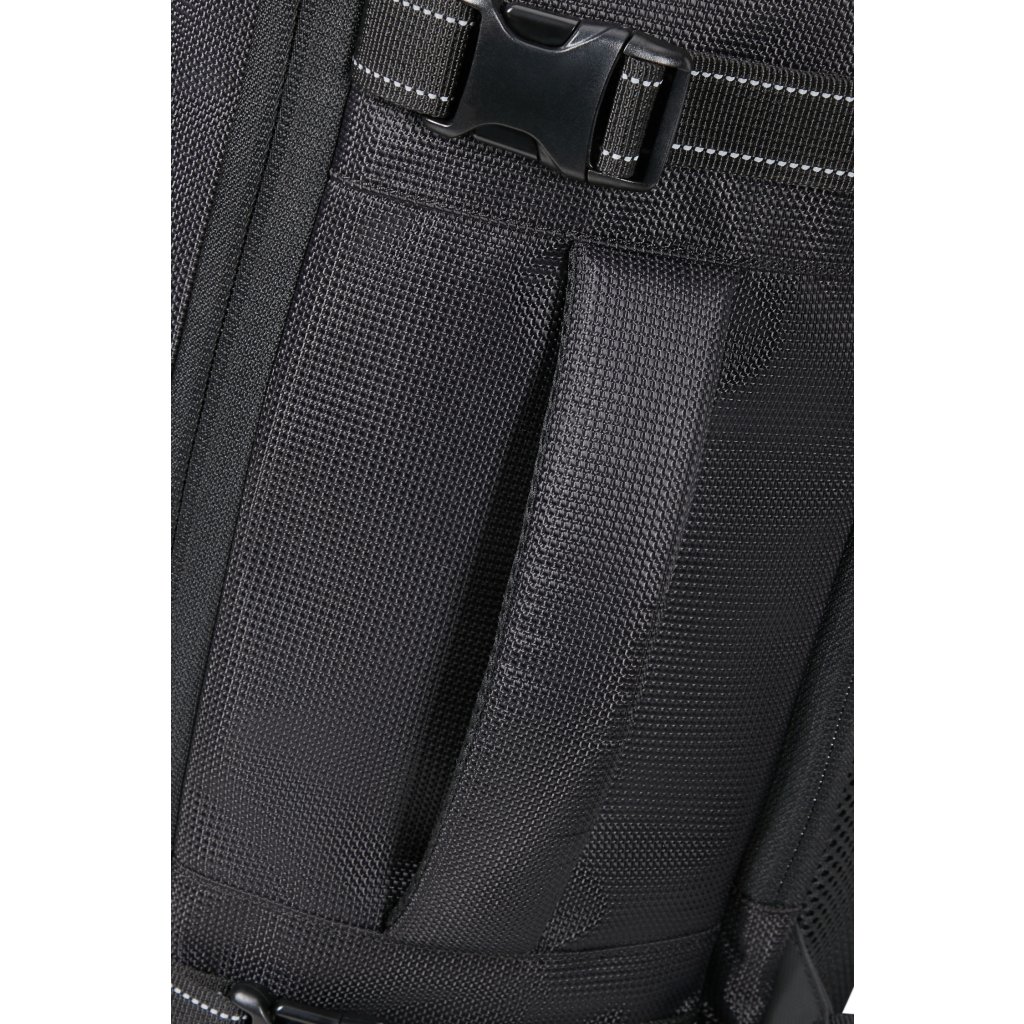 Samostatná polstrovaná kapsa na 15,6″ notebook a kapsa na tablet chrání techniku, smart sleeve na zadní straně dovolí nasadit batoh na výsuvné madlo kufru a cestovat pohodlně. Ergonomické popruhy, stahovací pásky a boční kapsa na láhev doplňují funkční výbavu.