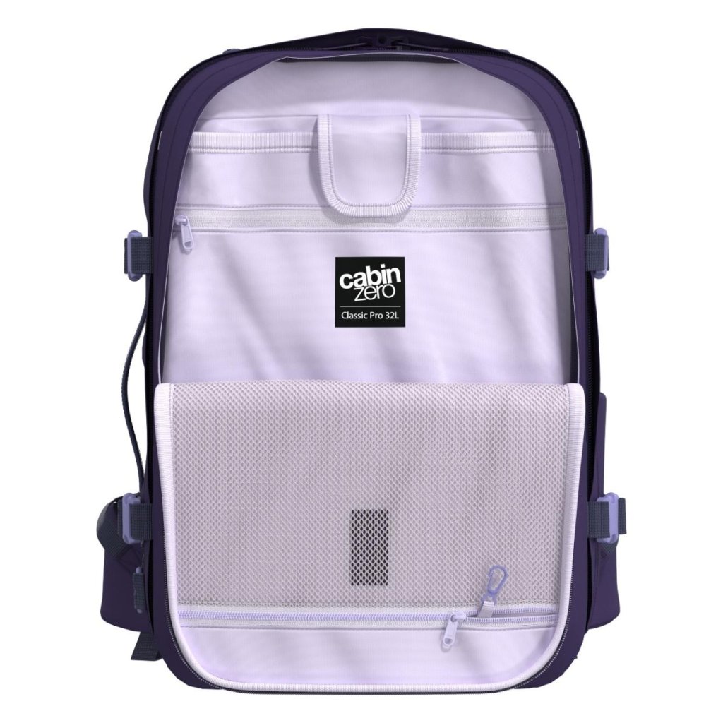 CabinZero Classic Pro 32L spojuje minimalistický vzhled s maximálním pohodlím a praktičností. Ergonomicky polstrovaná záda se systémem proudění vzduchu, hrudní i bederní popruh a rámová PE deska držící tvar dělají z batohu skvělého společníka do letadla, do práce i na víkend. Dvě plnohodnotné komory s véčkovým otevíráním ulehčí balení i rychlé hledání věcí. Samostatně stojící konstrukce zajišťuje snadný přístup a chrání batoh před nečistotami.