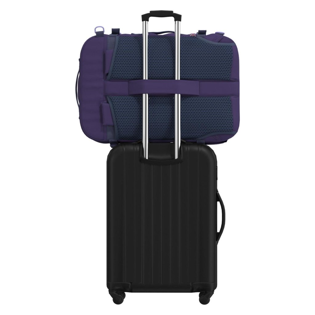 Uzamykatelné zipy YKK®, schovatelné ramenní popruhy Stowaway, rozšiřitelná kapsa na láhev a průvlek na madlo kufru dělají z batohu jistotu na každé cestě.