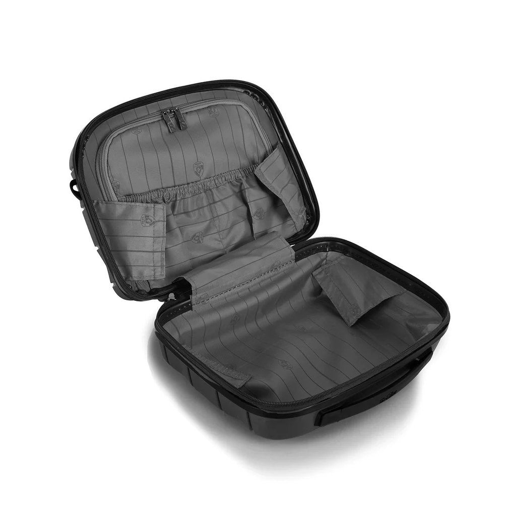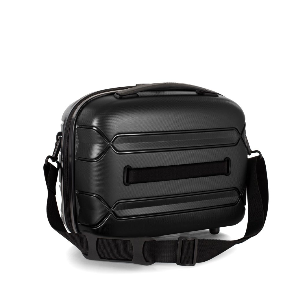 Kufřík Heys Milos Beauty Case se pyšní moderním designem s metalickou skořepinou a dvojí texturou na povrchu, což mu dodává výrazný vzhled. Díky odnímatelnému popruhu přes rameno s nastavitelnou délkou je přenášení velmi pohodlné. Navíc má kufřík popruh na zadní straně pro snadné nasunutí na madlo cestovního kufru.