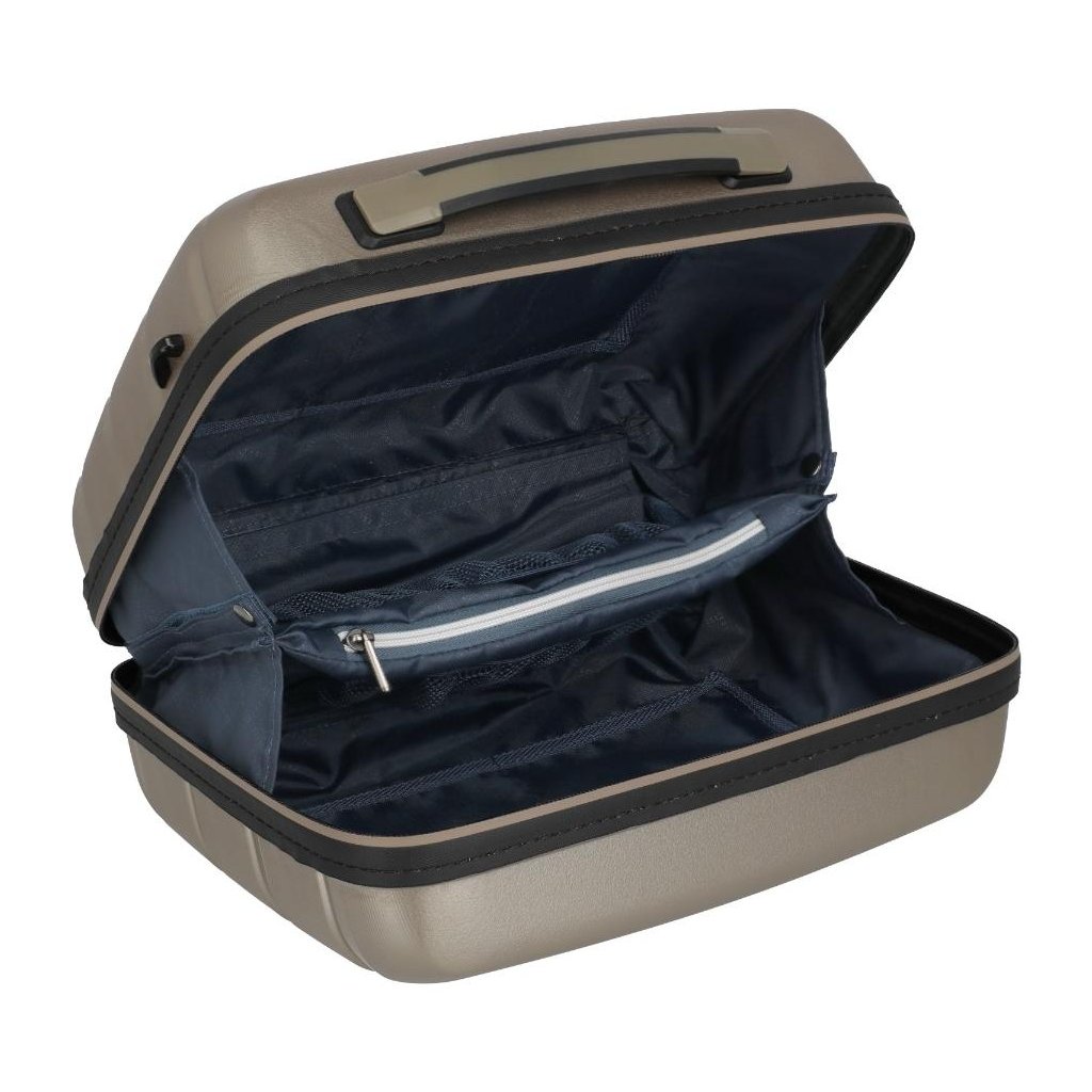 Odolná a zároveň pružná skořepina z polypropylenu chrání uložené věci před nárazy a tlakem. Promyšlené vnitřní členění s přihrádkami a kapsou na zip umožňuje přehlednou organizaci všeho potřebného – od drobné kosmetiky až po větší balení hygienických přípravků.