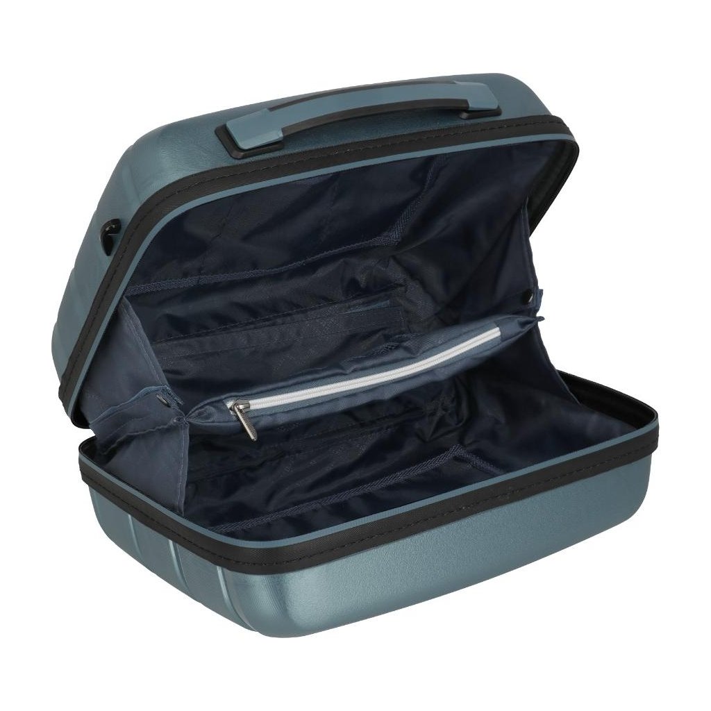 Odolná a zároveň pružná skořepina z polypropylenu chrání uložené věci před nárazy a tlakem. Promyšlené vnitřní členění s přihrádkami a kapsou na zip umožňuje přehlednou organizaci všeho potřebného – od drobné kosmetiky až po větší balení hygienických přípravků.