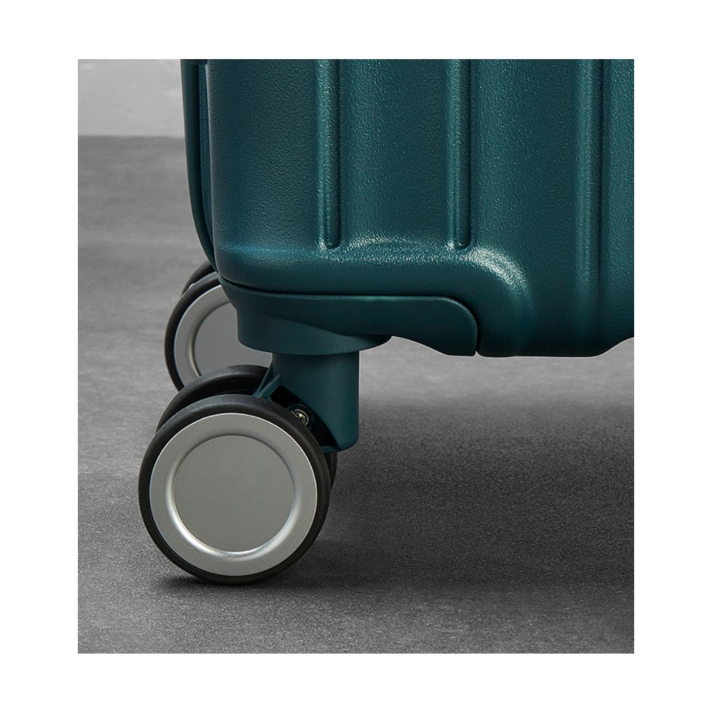 - Kolečka: Čtyři dvojitá kolečka otočná o 360° umožňují snadnou manipulaci i v přeplněných prostorách letišť.