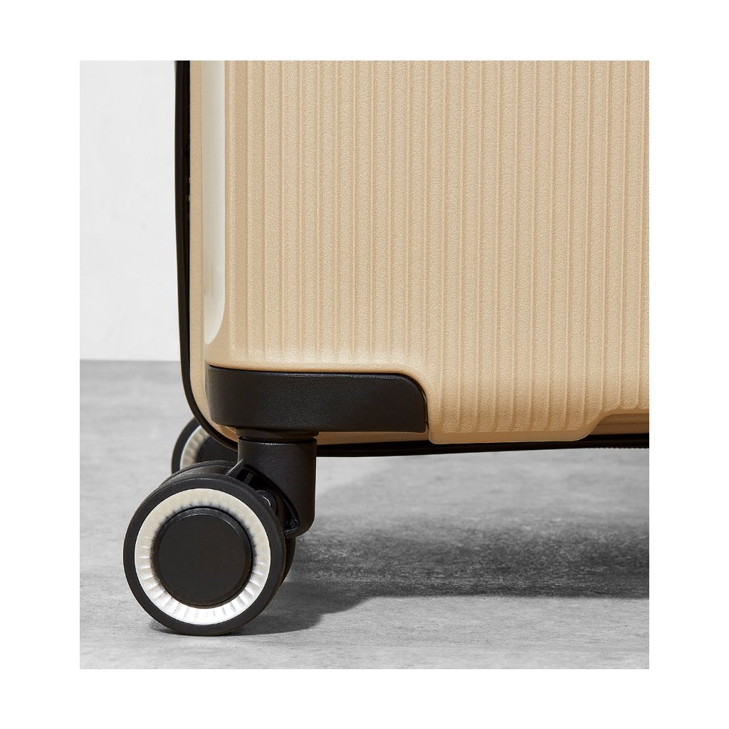 Díky čtyřem dvojitým kolečkům otočným o 360° a lehkému teleskopickému výsuvnému systému se kufr pohybuje hladce i v úzkých uličkách letiště. Horní plastové madlo usnadňuje přenášení.