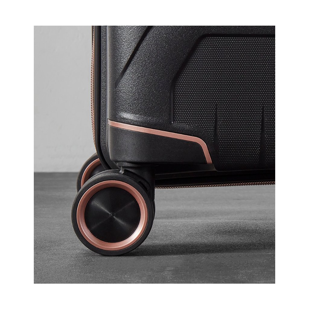 ROCK Astrid S je spolehlivé kabinové zavazadlo pro rychlé přesuny i víkendové lety. Skořepina z polypropylenu (PP) odolá nárazům, TSA kódový zámek zjednoduší letištní kontroly a expandér přidá +10–15 % místa, když je potřeba. Díky 4 dvojitým kolečkům 360° a lehké teleskopické rukojeti se s kufrem snadno manévruje i v plných terminálech. Uvnitř oceníte textilní přepážku, kapsy a jistící popruhy, takže vše zůstane přehledně na svém místě.