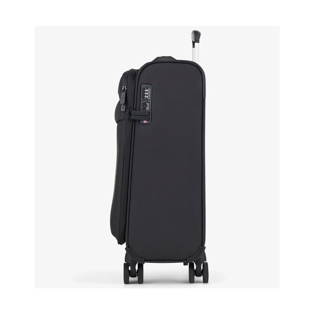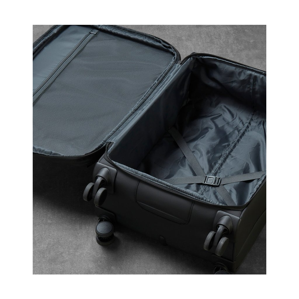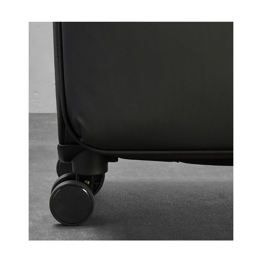 Kufr je vyroben z TPU polyesteru, který se vyznačuje vysokou pevností v tahu, odolností proti oděru, roztržení i chemickému poškození. Tento materiál zajišťuje dlouhou životnost i při častém používání. Čtyři tichá otočná kolečka a integrovaný TSA zámek přispívají k pohodlnému a bezpečnému cestování.