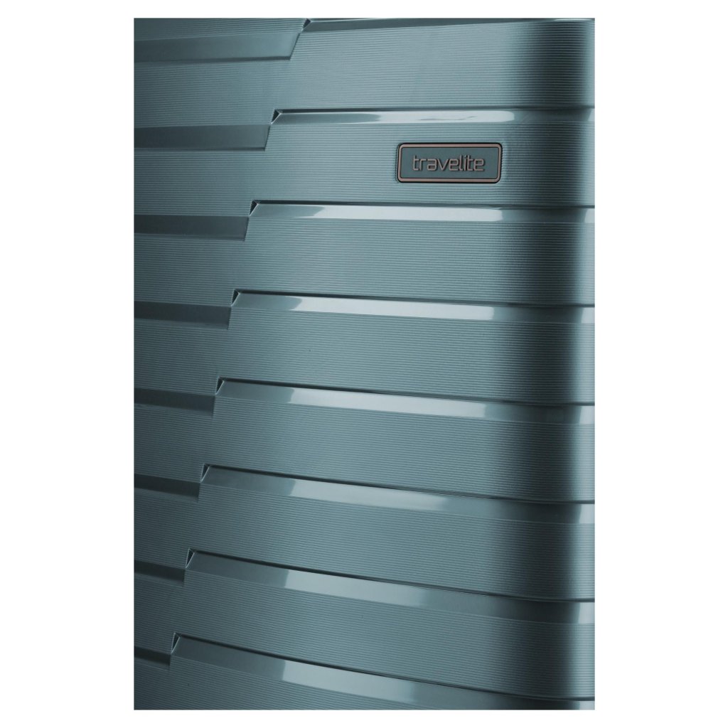Čtyři velká dvojitá kolečka otočná o 360° zajišťují plynulý, tichý a stabilní pohyb. Povrchová úprava kombinuje lesklé i matné plochy s plastickým linkováním, které nejen chrání kufr proti poškrábání, ale zároveň mu dodává elegantní a prémiový vzhled.