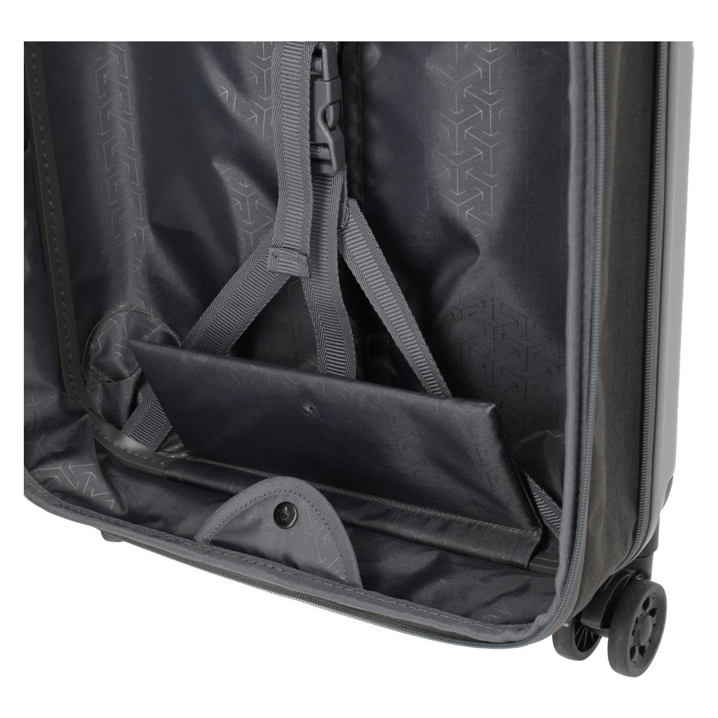 - Materiál: Odolný polykarbonát zajišťuje lehkost a pružnost, přičemž spolehlivě chrání obsah zavazadla.