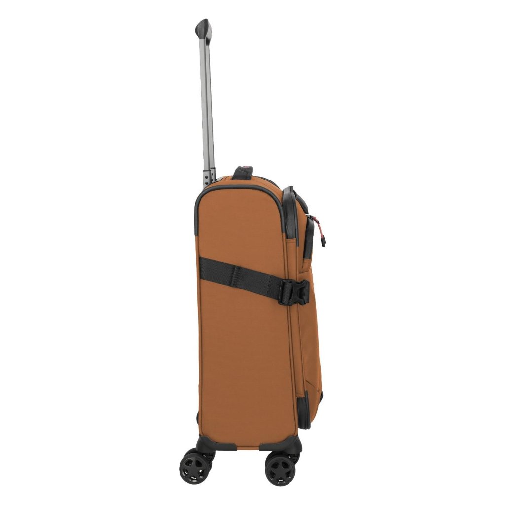 Textilní palubní kufr Travelite Briize S Curry je ideálním společníkem pro každého, kdo hledá stylové a praktické zavazadlo. Vyrobený z odolného 900D polyesteru s ochrannou PU vrstvou, známého jako tarpaulin, poskytuje vynikající ochranu proti vodě a nečistotám. Díky čtyřem otočným dvoukolečkům o 360° je manipulace s kufrem snadná a pohodlná.