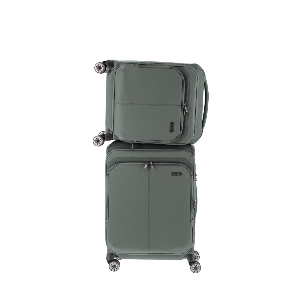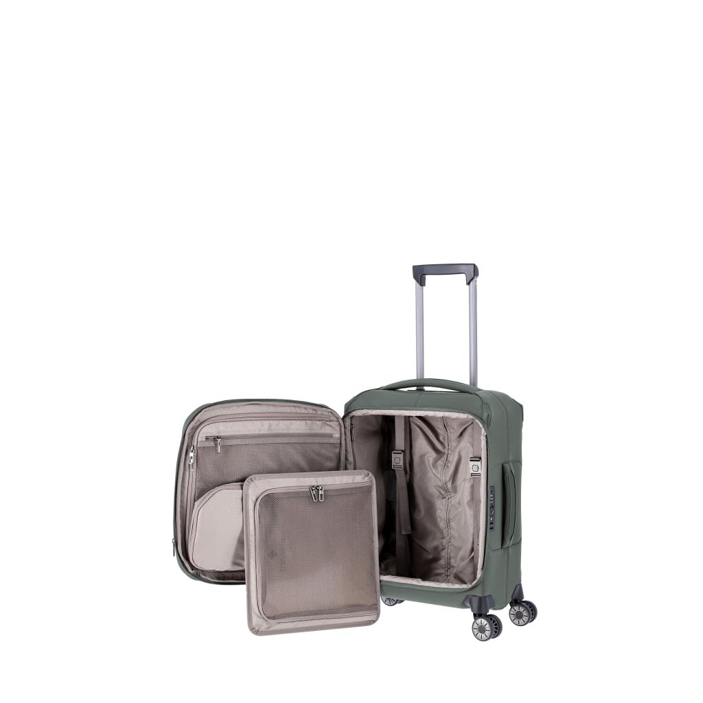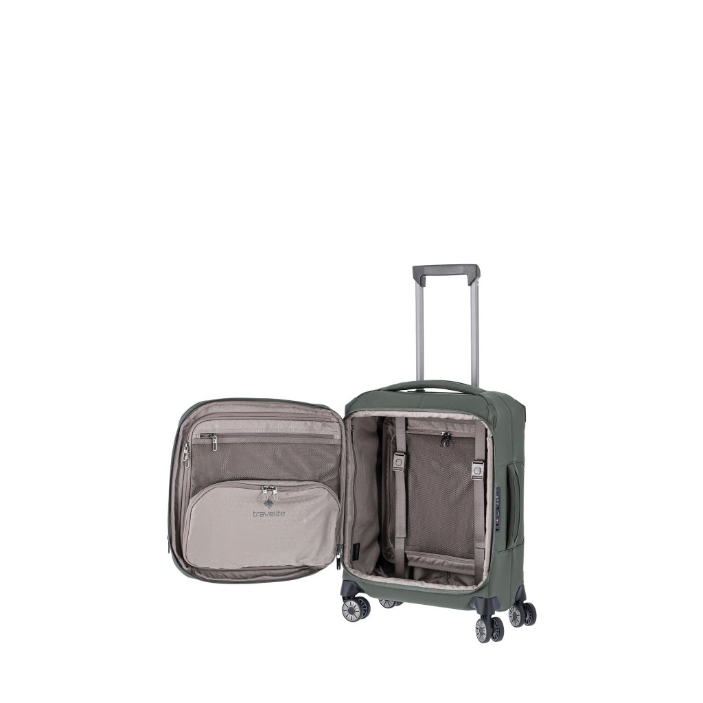 Travelite Priima S - Olive je ideálním společníkem pro každého cestovatele, který hledá stylový, lehký a ekologický kufr. Tento textilní kufr v elegantní zelené barvě je vyroben z odolného recyklovaného nylonu, což zajišťuje jeho dlouhou životnost a šetrnost k životnímu prostředí.