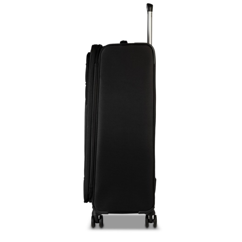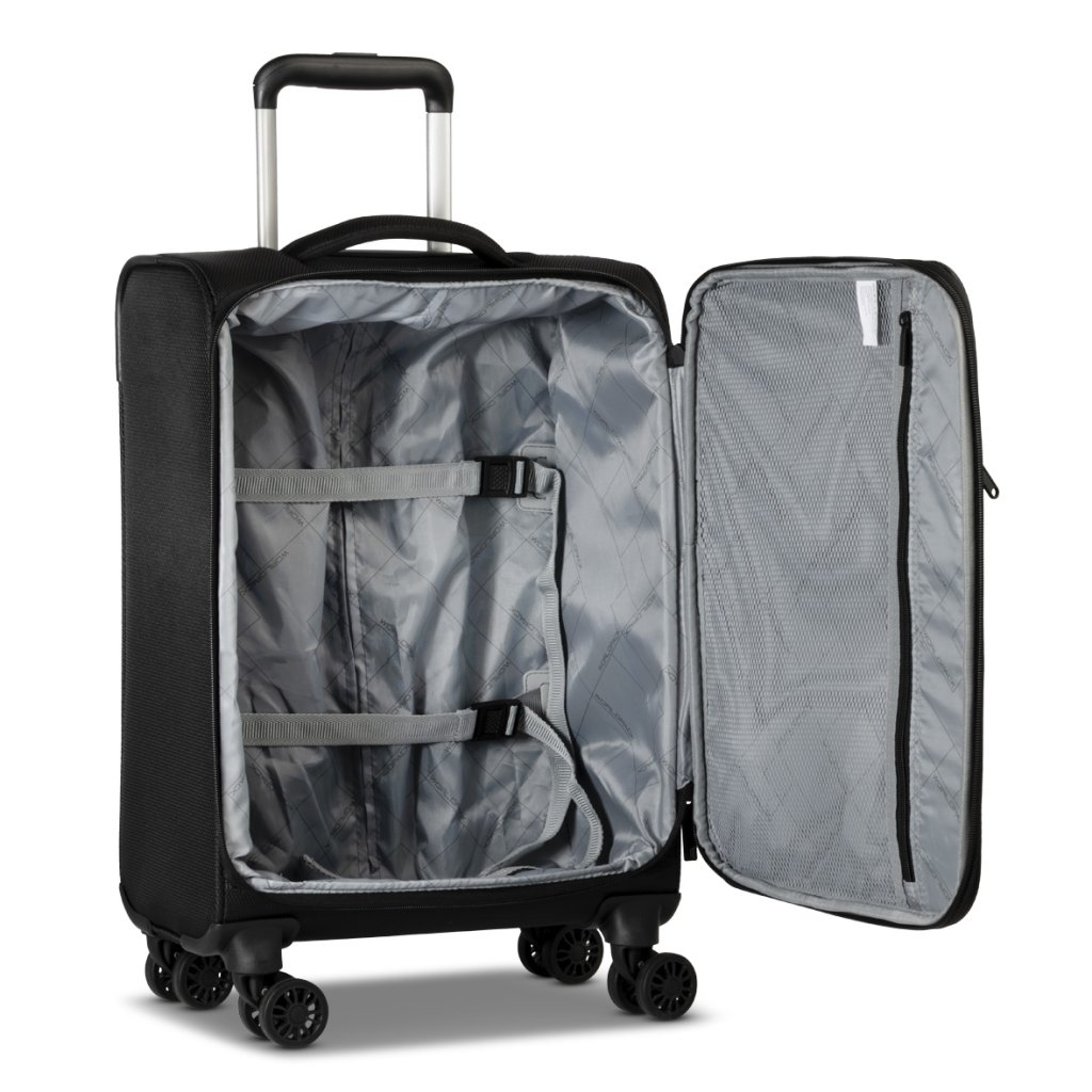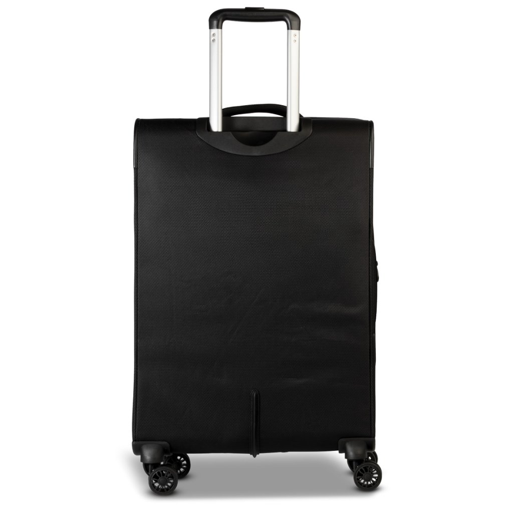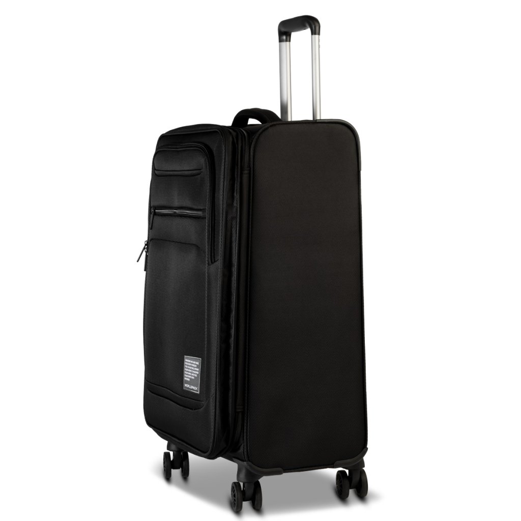 Kufr je vyroben z odolného 400D polyesteru, váží pouze 2,40 kg a je vybaven čtyřmi dvojitými kolečky otočnými o 360° pro snadný a plynulý pohyb v letištních halách i městských ulicích.