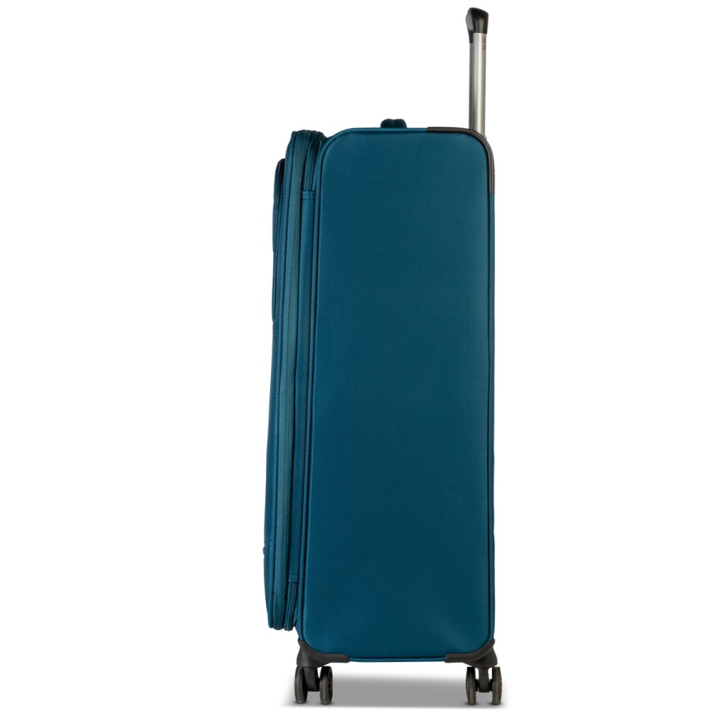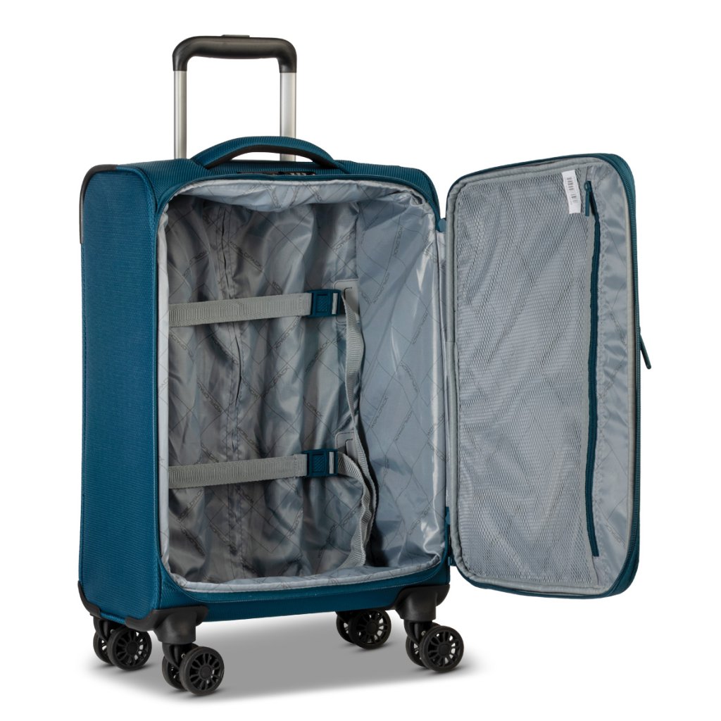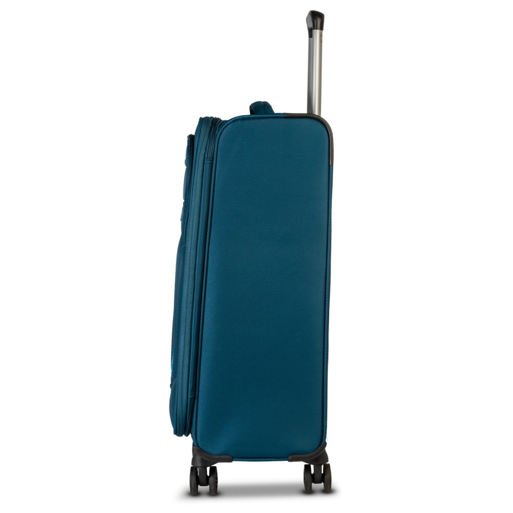 Kufr je vyroben z odolného 400D polyesteru, váží pouze 2,40 kg a je vybaven čtyřmi dvojitými kolečky otočnými o 360° pro snadný a plynulý pohyb v letištních halách i městských ulicích.