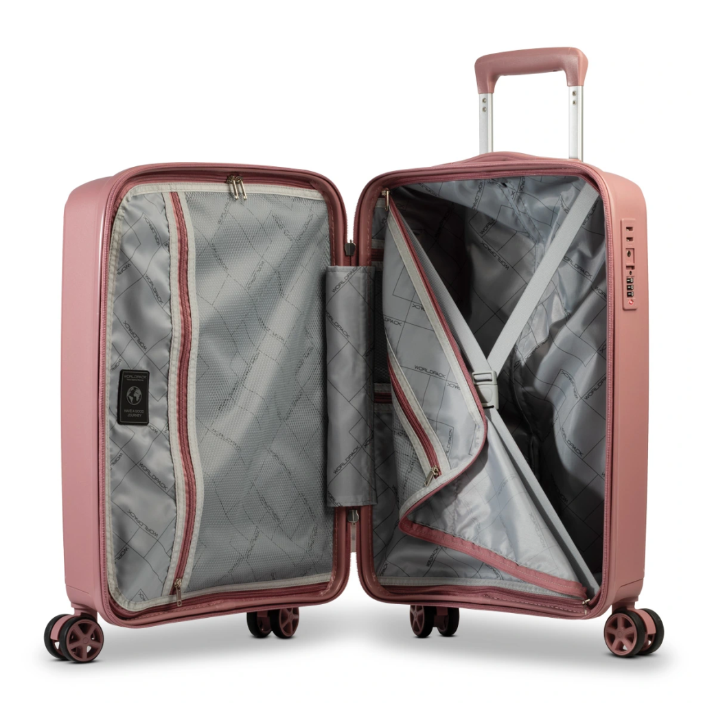 Odolná skořepina z polypropylenu poskytuje spolehlivou ochranu obsahu, zatímco čtyři otočná kolečka a teleskopické madlo zajišťují snadnou manipulaci. Praktické vnitřní uspořádání vám umožní mít všechny věci přehledně uložené.