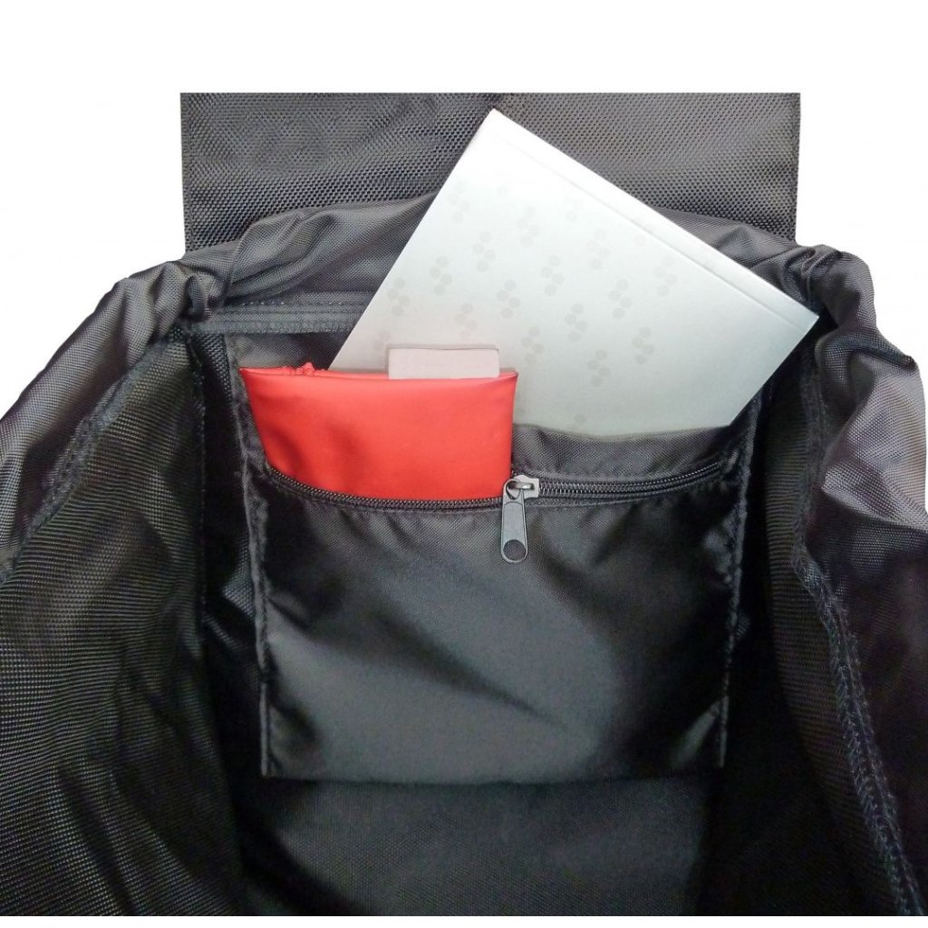 Hlavní úložný prostor tašky I-Max MF nabízí objem 43 L a maximální nosnost až 50 kg, avšak doporučené zatížení je 25 kg. Nechybí dvě menší vnitřní kapsy na drobnosti (jedna zip a druhá otevřená) a velká vnější kapsa na zip. Zavírání tašky je řešeno stahovací šňůrkou s pojistkou a provléká se klopou. Taška je na vozík navlečena přes velké textilní poutko a v horní části připevněna suchým zipem, lze ji tedy snadno odepnout a vyčistit.
