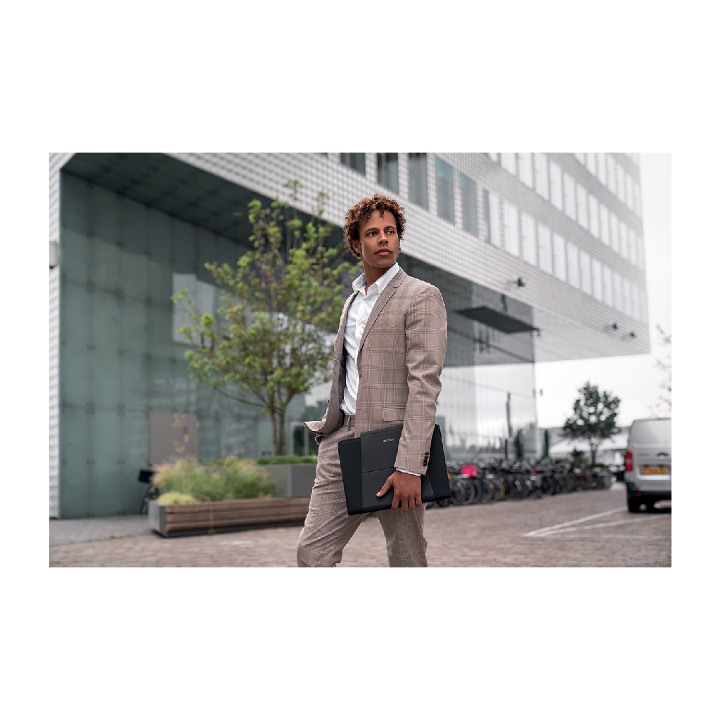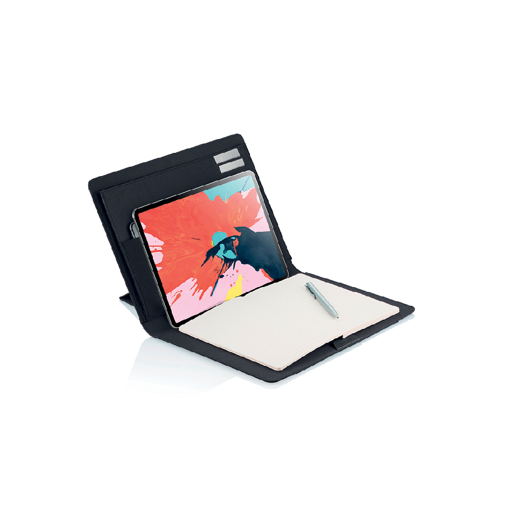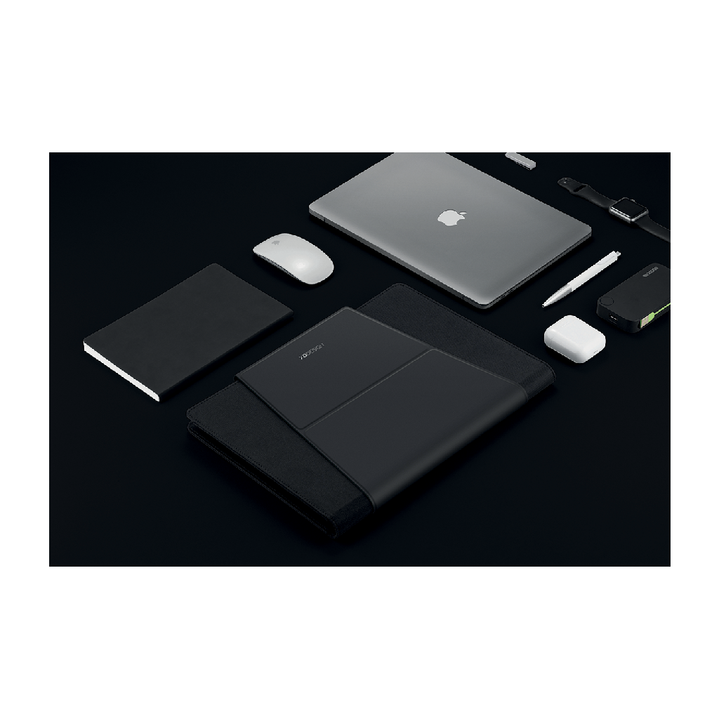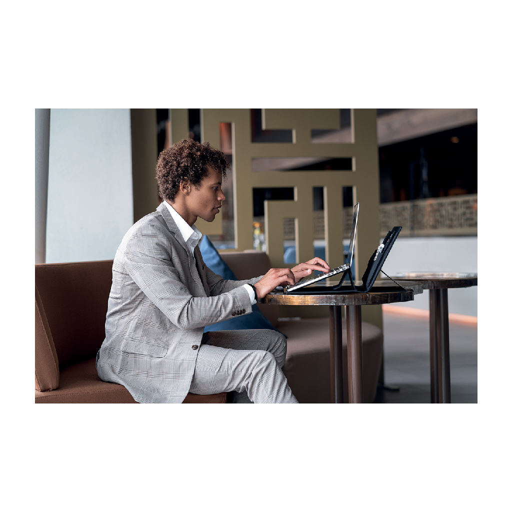 Chytrá mobilní kancelář pro pohodlnou práci na cestách vám nabídne úložný prostor pro notebook 13" a tablet 12.9", magnetický stojan na notebook, držák na tablet a podložku pod myš. Vyrobena z recyklovatelného materiálu rPET. Pracujte pohodlně odkudkoliv!