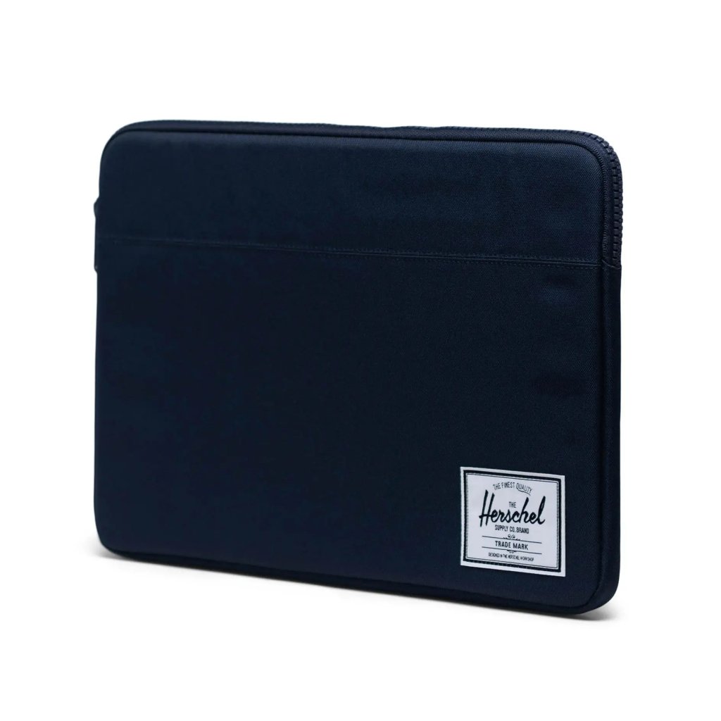 Herschel Anchor 15-16" Sleeve Navy: Elegantní a ekologická ochrana pro váš MacBook Pro. Tento stylový obal je navržen tak, aby poskytoval maximální bezpečnost vašemu zařízení, ať už jste kdekoli. Vyrobený z recyklovaných tkanin EcoSystem™ 600D Fabric, které pocházejí ze 100% recyklovaných spotřebitelských lahví na vodu, zdůrazňuje závazek značky Herschel k udržitelnosti.
