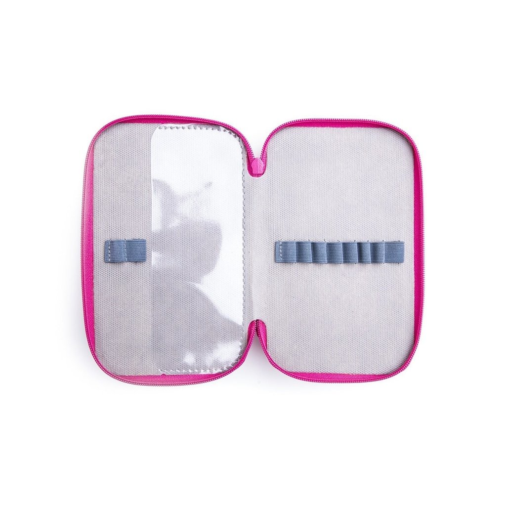 Školní třípatrový penál je určen pro žáky 1.stupně ZŠ. Každé jednotlivé patro se uzavírá na samostatný zip. Má celkem 30 pružných gumových poutek pro uložení psacích potřeb. Jedno patro je opatřeno uzavíratelnou kapsičkou na suchý zip, ve třetím je průhledná přihrádka pro týdenní rozvrh se jmenovkou. Pouzdro má rozměr š.190 x v.55 x h.120mm. Prázdné váží 0,19kg (plněné 0,38kg). Můžete si vybrat mezi penálem neplněným nebo plněným psacími potřebami. Psací potřeby jsou od renomovaných značek Koh-i-noor, Centropen, Concord.
