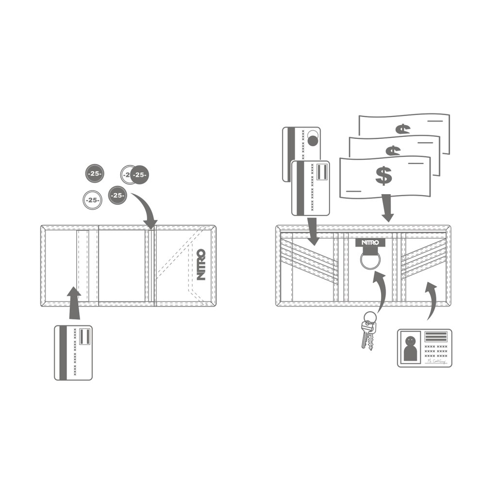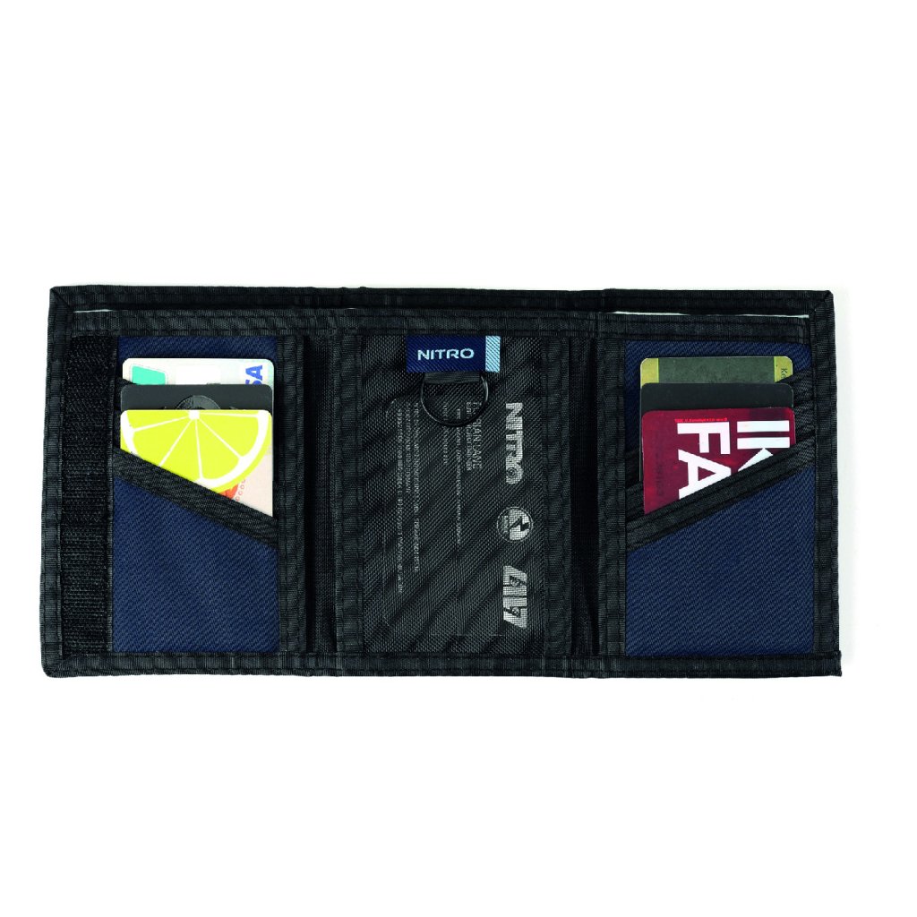 Textilní peněženka NITRO WALLET graphite s jednoduchým zavíráním na suchý zip. Obsahuje přihrádky na karty a doklady, kapsičku na drobné na zip, očko na klíče nebo řetízek....