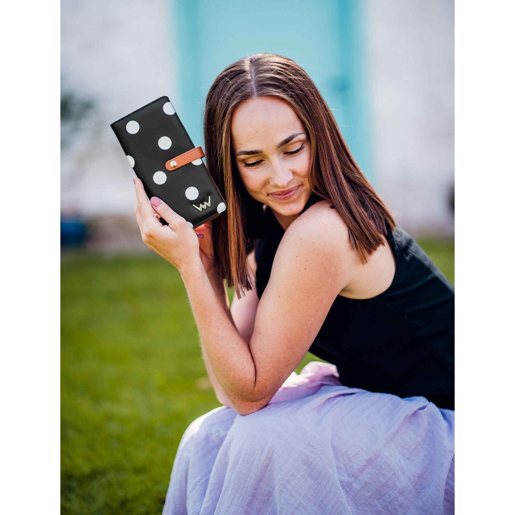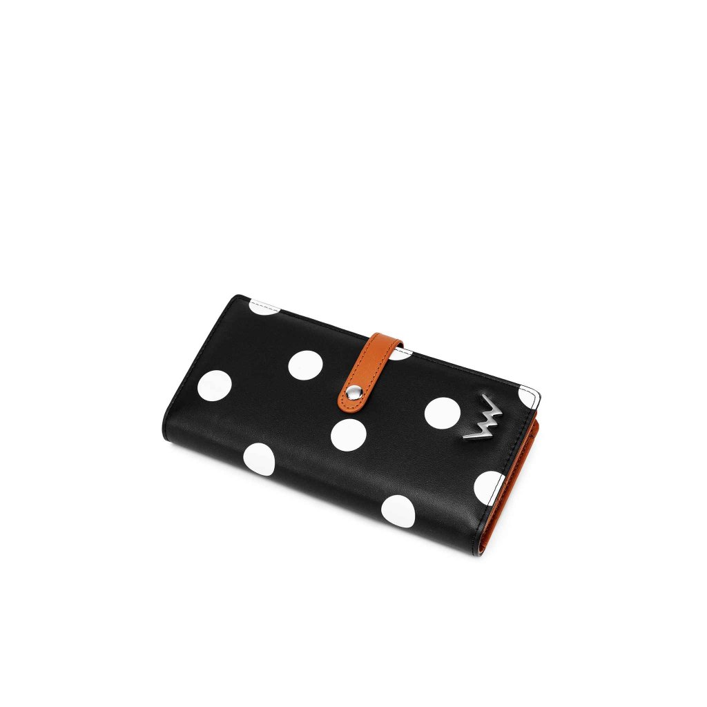 Puntíkatý vzor v kombinaci s černou barvou dodává peněžence optimistický nádech a snadno ji sladíte s jakoukoli kabelkou či batohem. Magnetické zapínání pod klopou umožňuje jednoduchý a bezpečný přístup k obsahu peněženky. Stříbrné kování pak dodává celkovému vzhledu elegantní šmrnc.