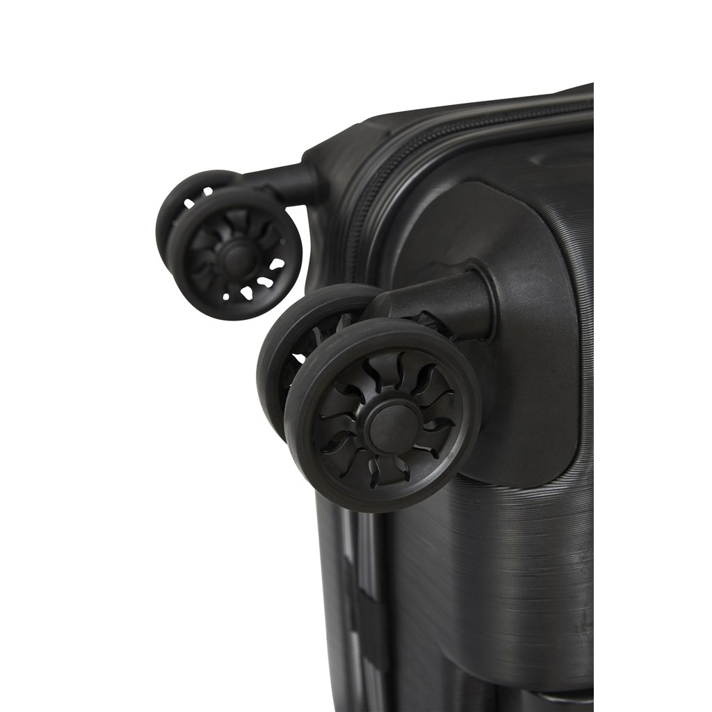 Díky diamantové textuře odolné vůči poškrábání si kufr zachovává svůj vzhled i po mnoha cestách. Vysoce kvalitní otočná dvojitá kolečka zajišťují hladký pohyb na různých površích, což oceníte zejména při přesunech na letištích nebo nádražích.