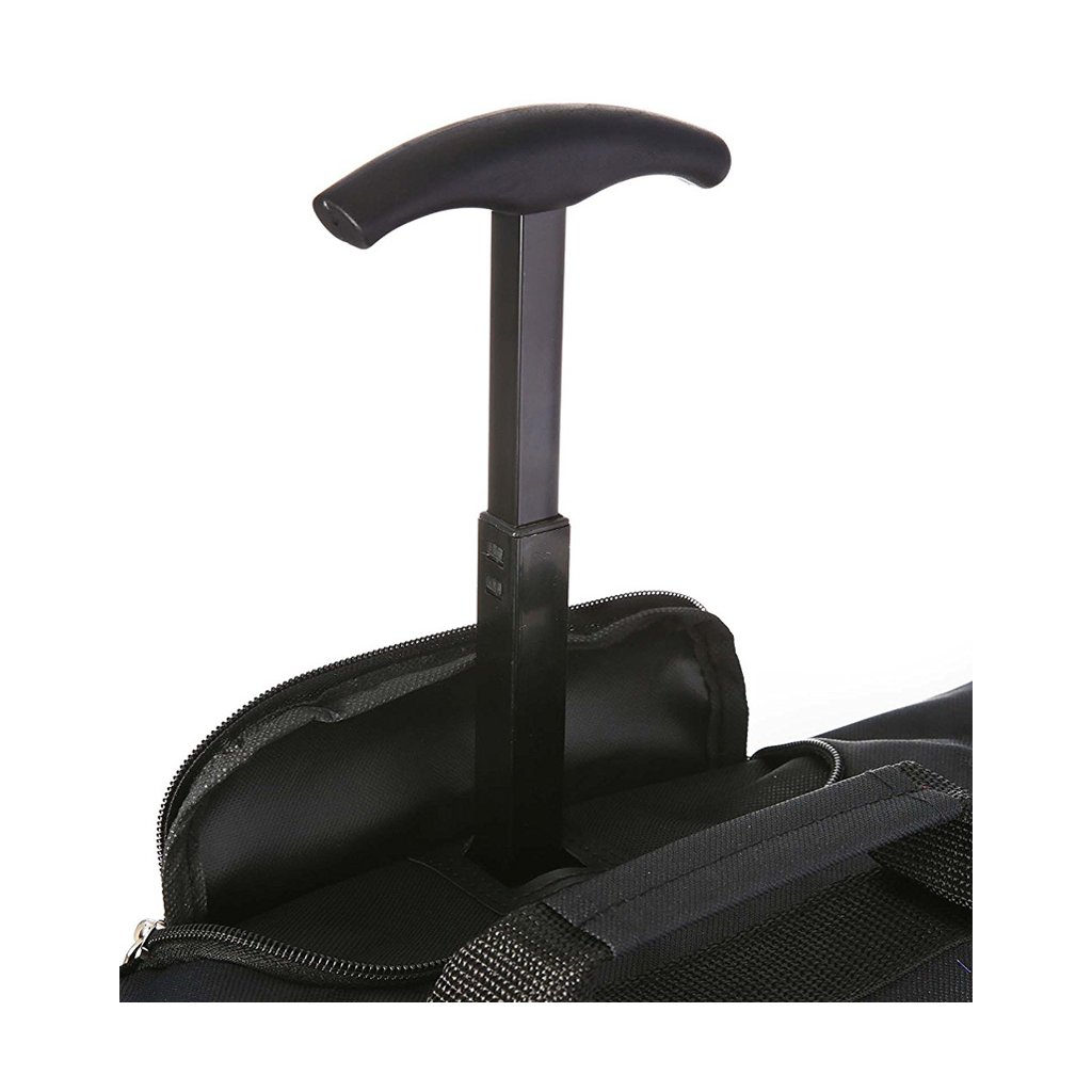 - na zadní straně tašky je umístěn popruh sloužící jako držák na výsuvné madlo cestovního kufru