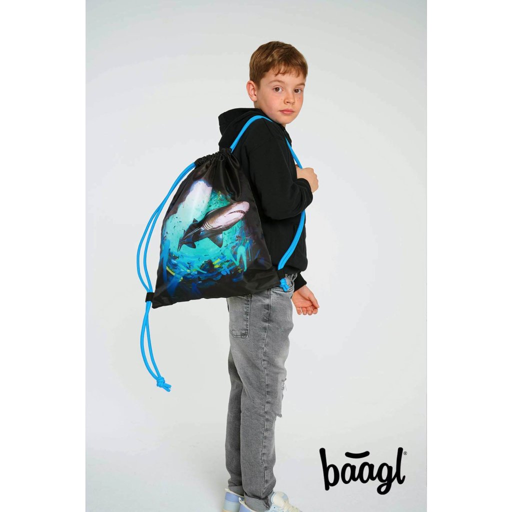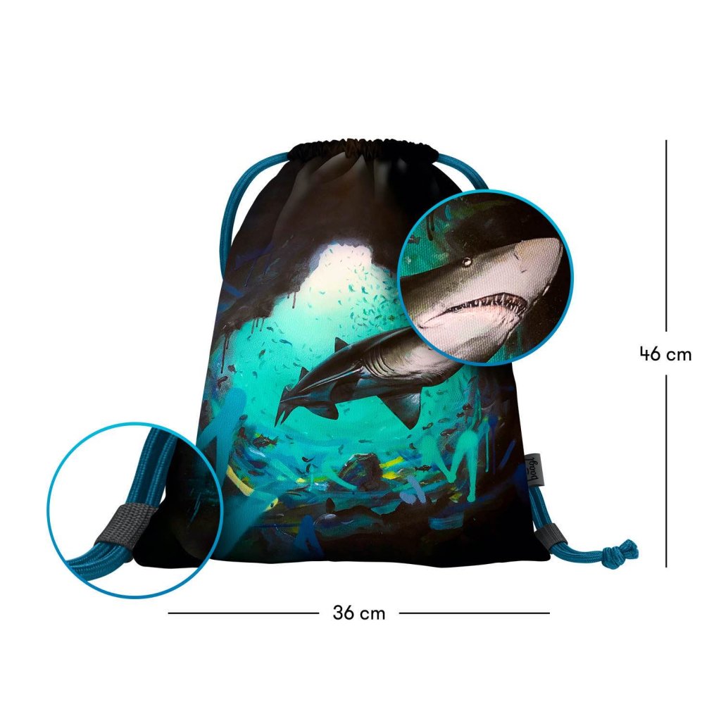 Objevte praktický a stylový sáček na obuv či jiné drobnosti pro vaše volnočasové aktivity. Tento sáček je ideální pro děti i dospělé, kteří hledají spolehlivý způsob, jak přenášet své věci. Díky svému modernímu designu s motivem žraloka od Lukera zaujme každého.