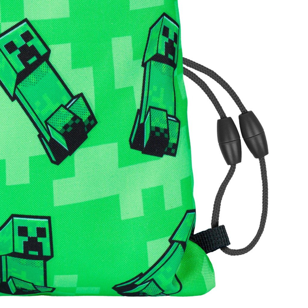 Sáček je ideální pro přenášení cviček, přezůvek nebo jiného sportovního vybavení. Je vhodný pro děti od první do třetí třídy a díky svému objemu pojme vše potřebné. Zelená barva s motivem Creeper dodává sáčku jedinečný vzhled, který osloví každého malého hráče Minecraftu.