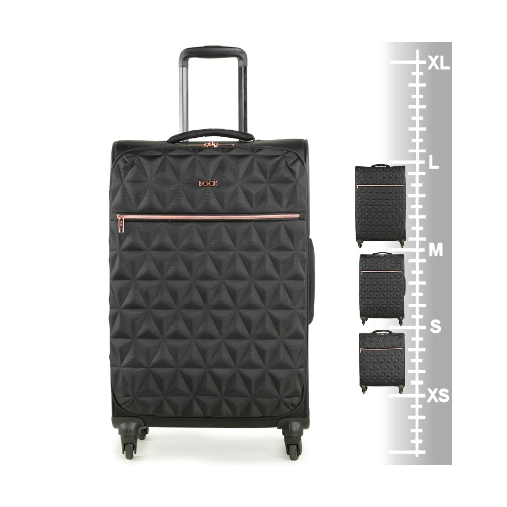Kufry z kolekce ROCK Jewel se pyšní jedinečným módním 3D designem, který zaujme na první pohled. Vyrobeny jsou z kvalitního polyesteru, což zajišťuje jejich odolnost a lehkost. Textilní provedení dodává kufrům moderní vzhled.