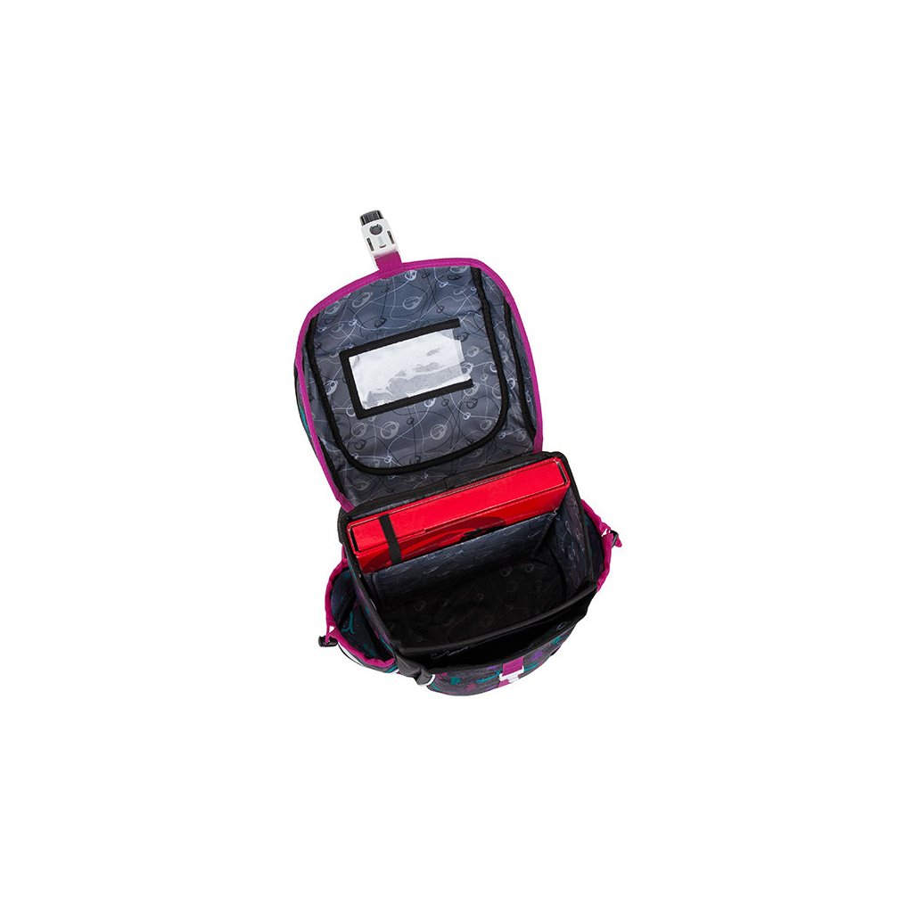 Jednokomorová prostorná školní aktovka s jednou separační kapsou pro lepší přehlednost. Vhodná pro A4 a školní desky o rozměru: 32,5 x 22,5 x 4,5 cm. Přední kapsa na penál nebo svačinu, uvnitř kapsy malý organizér s kapsičkou na kartu nebo dětskou peněženku.