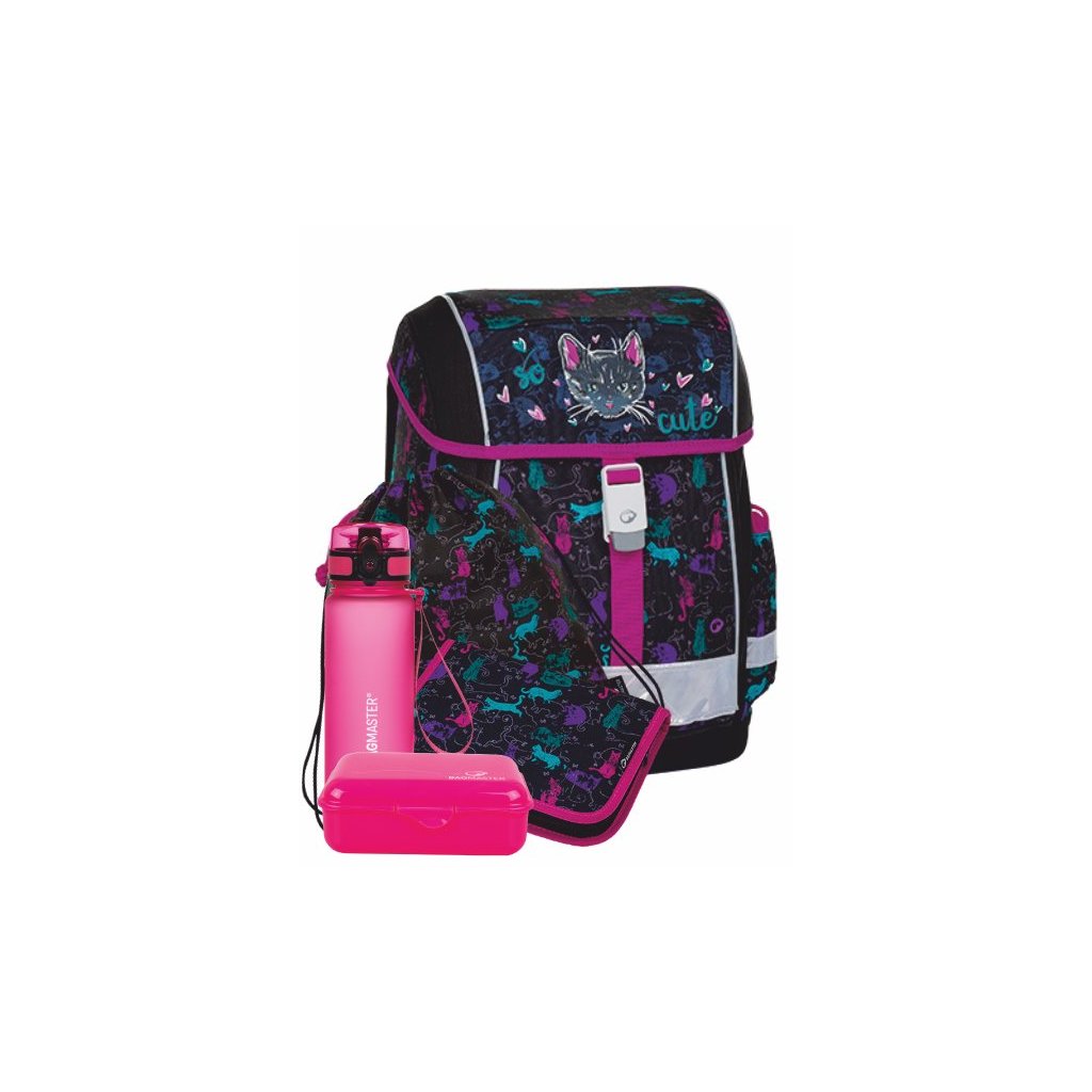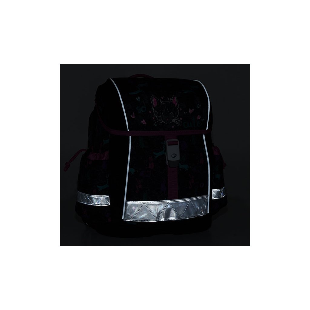 Jednokomorová dívčí aktovka pro 1.-3. třídu ZŠ. Prostorná s přední kapsou, motiv kočička. Přehledná hlavní komora, vnitřní separace, boční kapsy na láhev, stabilní pevné dno. Jednoduché zapínání pro děti pomocí magnetické spony zn. FIDLOCK. Reflexní prvky splňující normy EU/EN.