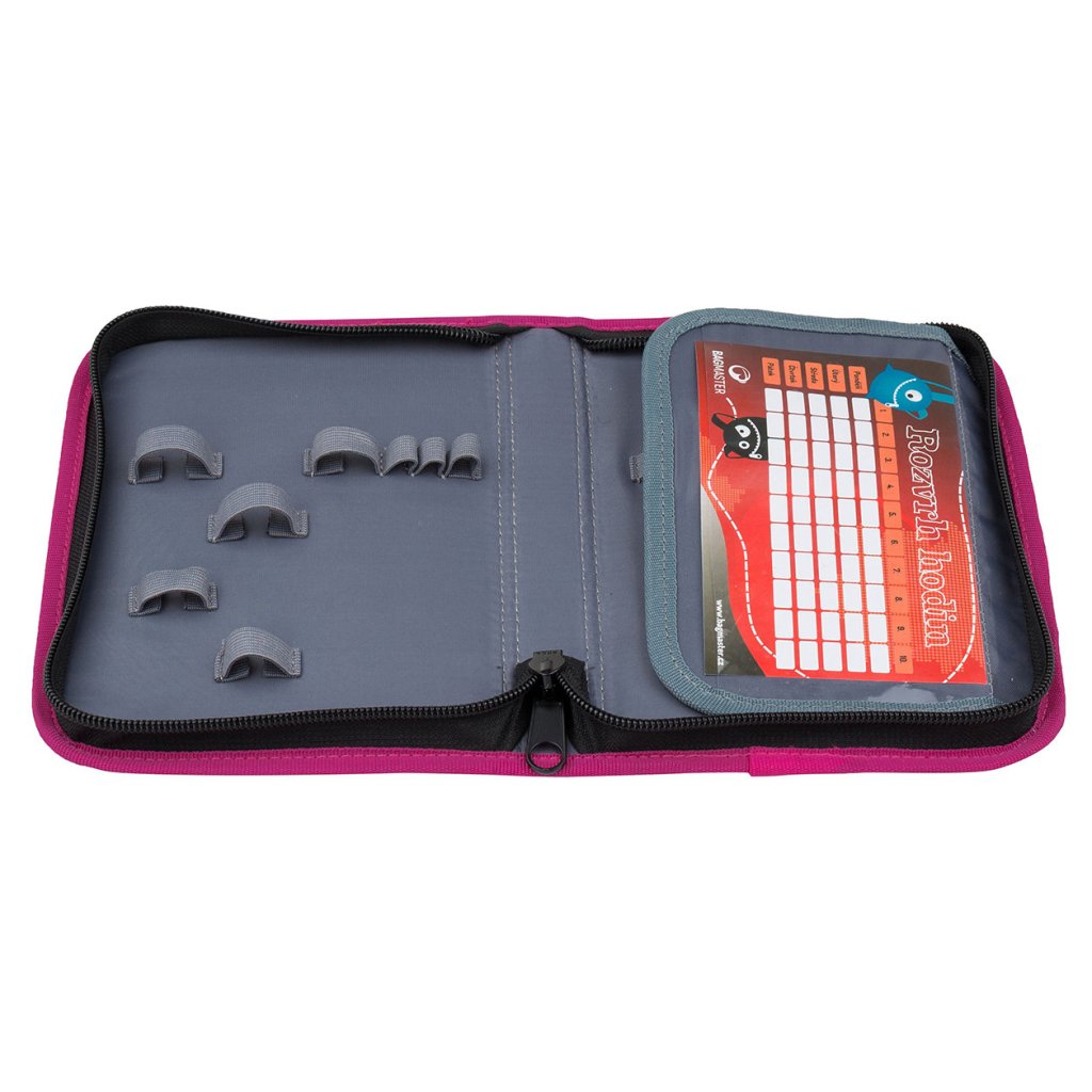 Z vnitřní strany klopny transparentní kapsička na rozvrh hodin. Klopna na magnetickou sponu německé značky FIDLOCK.