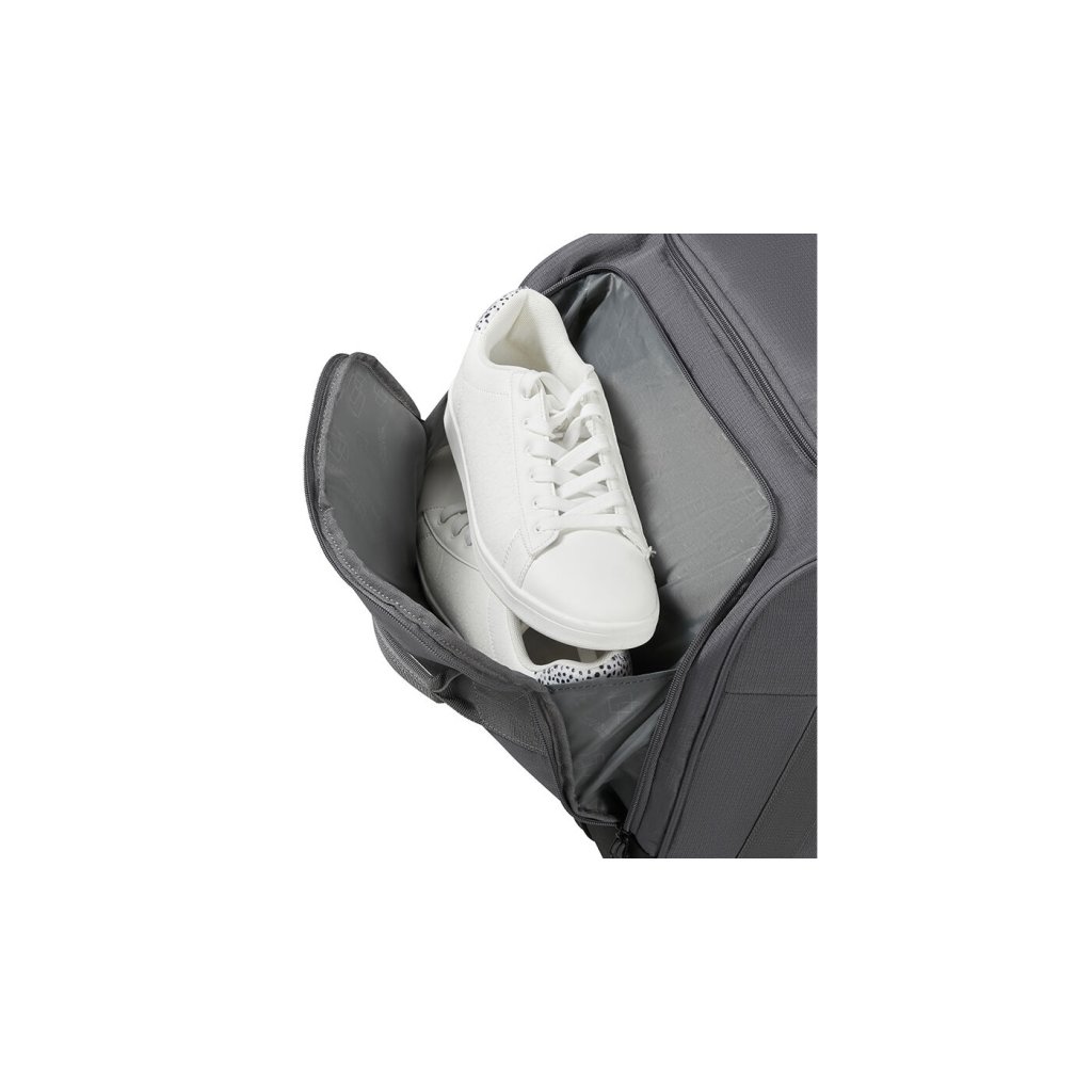 Integrovaná kapsa na obuv umožní mít boty oddělené od oblečení a udržet kufr čistý.