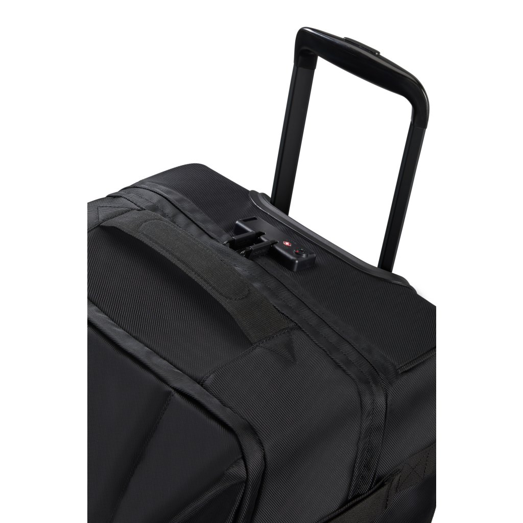 - Pohodlné manévrování: Taška je vybavena dvěma kolečky a horním madlem pro snadné přenášení.