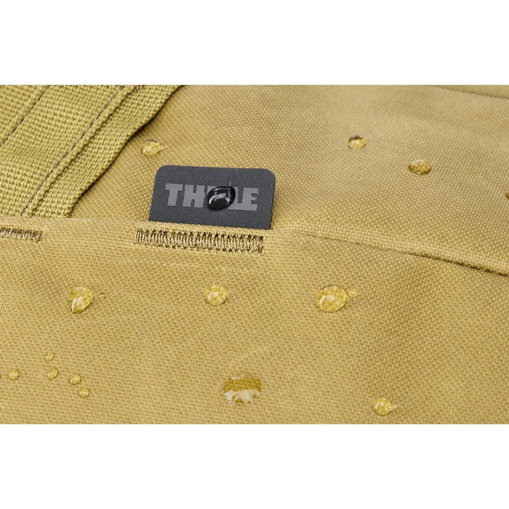 Tato taška je vyrobena ze 100% recyklovaného polyesteru z plastových lahví. Vnější tkanina z voskovaného plátna 600D je odolná vůči vodě díky povrchové úpravě bez toxických PFC. Thule Aion produkty mají certifikát bluesign®, což potvrzuje jejich ekologickou šetrnost.
