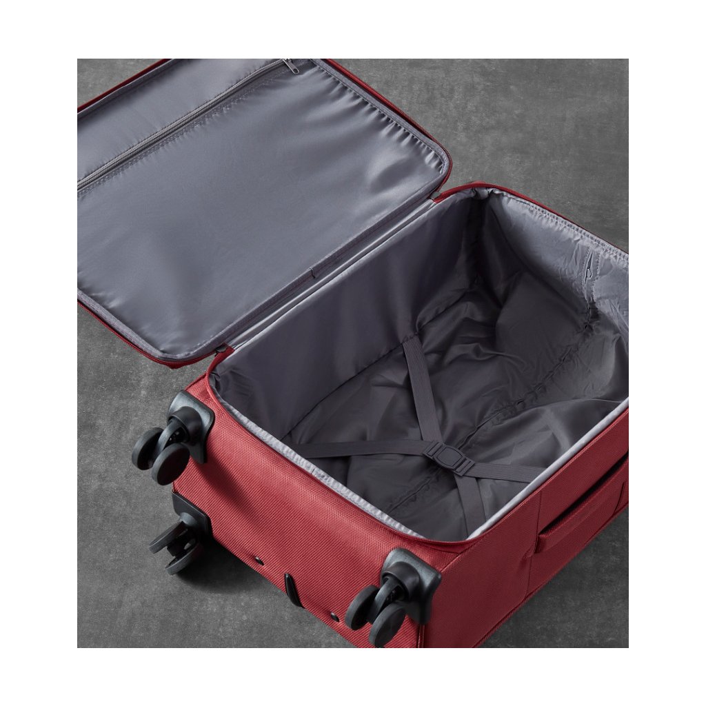 Pevný polyesterový materiál odolává mechanickému opotřebení a zároveň udržuje kufr příjemně lehký. O plynulý pohyb se starají čtyři tichá otočná kolečka, zatímco integrovaný TSA zámek zvyšuje bezpečnost při cestování do zemí se zpřísněnými kontrolami.