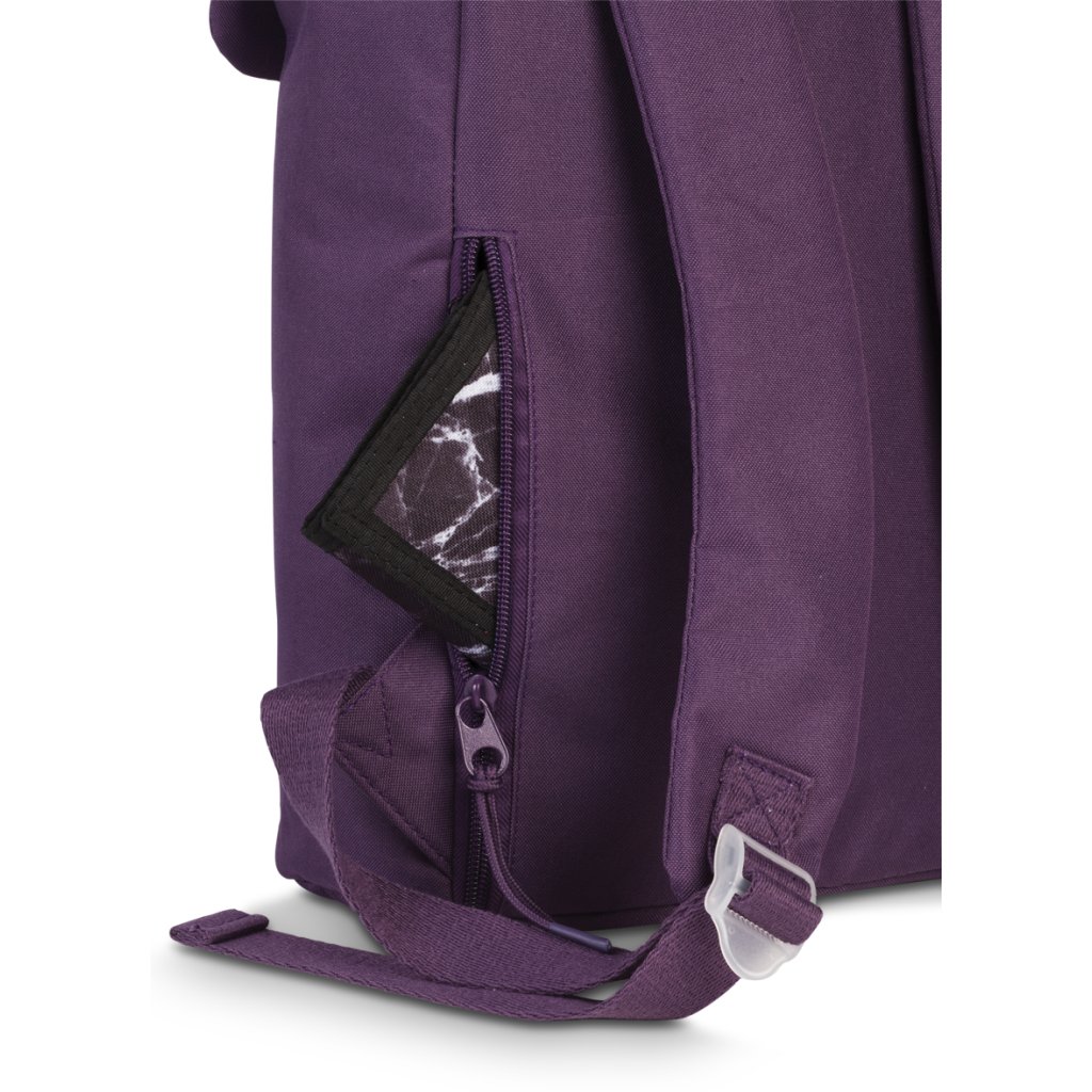 - Další kapsy: Na přední a zadní straně batohu, obě na zip.