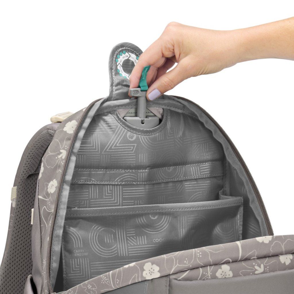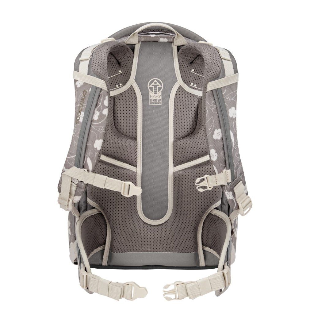 Rychlé a přesné přizpůsobení výšky batohu pomocí otočného mechanismu umístěného uvnitř zadní části. Systém EASY GROW SYSTEM umožňuje plynulé nastavení ramenních popruhů podle aktuální výšky dítěte, takže batoh správně sedí a přirozeně roste spolu s ním.