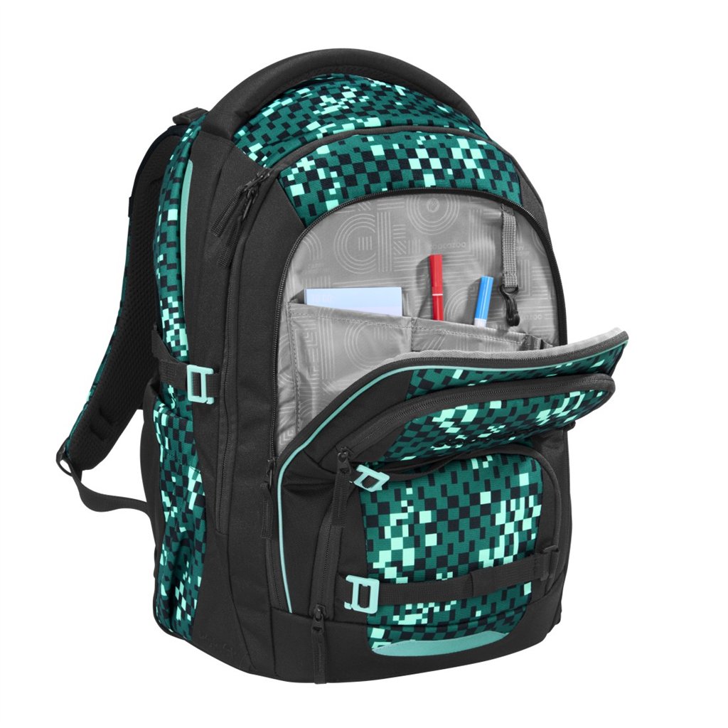 Vnitřní uspořádání batohu nabízí dostatek místa pro učebnice, sešity i každodenní výbavu. Hlavní přihrádky s integrovanou částí na knihy jsou umístěny blízko zad, což pomáhá s lepším rozložením hmotnosti.