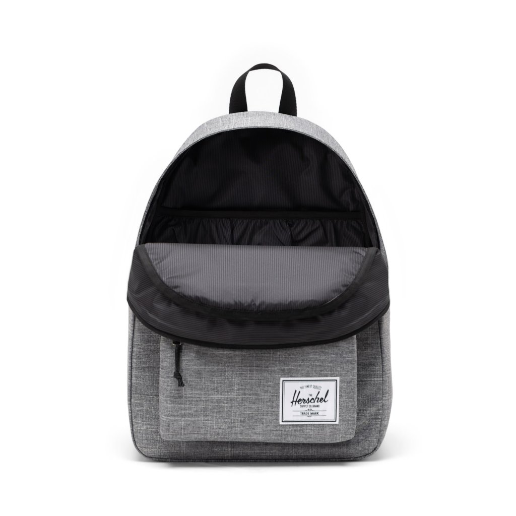 S objemem 26 litrů poskytuje Herschel Classic™ Raven Crosshatch dostatek prostoru pro všechny vaše školní nebo každodenní nezbytnosti. Prostorná hlavní přihrádka umožňuje snadný přístup k vašim věcem, zatímco speciální plovoucí pouzdro chrání váš notebook. Nastavitelné polstrované ramenní popruhy zajišťují maximální komfort při nošení.