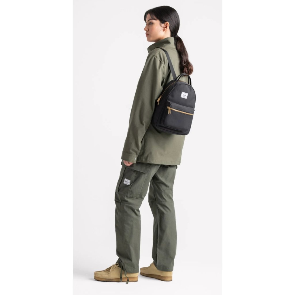 Batoh Nova Mini je vyroben z EcoSystem™ 600D Fabric, který pochází ze 100% recyklovaných spotřebitelských lahví na vodu, což podporuje ekologický přístup značky Herschel. Vnitřní podšívka s tonálním pruhem EcoSystem™ dodává elegantní dotek a také je vyrobena ze 100% recyklovaných materiálů.