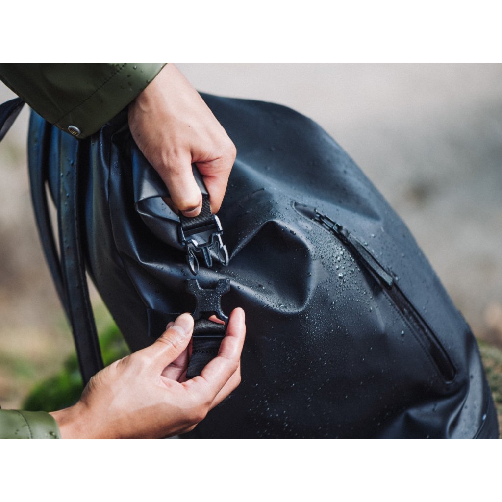 Batoh o objemu 26 litrů a rozměrech 55,9 × 31,8 × 21,6 cm (22″ × 12,5″ × 8,5″) má rolovací uzávěr s dvojitým zapínáním a přezkou, která zajistí bezpečné uzavření i v hustém dešti. Uvnitř nechybí polstrovaná přihrádka na notebook 15"/16", kapsa na láhev s vodou, síťované kapsy pro organizaci drobností a klip na klíče. Praktická zadní kapsa na zip umožňuje snadný přístup k notebooku bez nutnosti rozbalovat celý batoh.