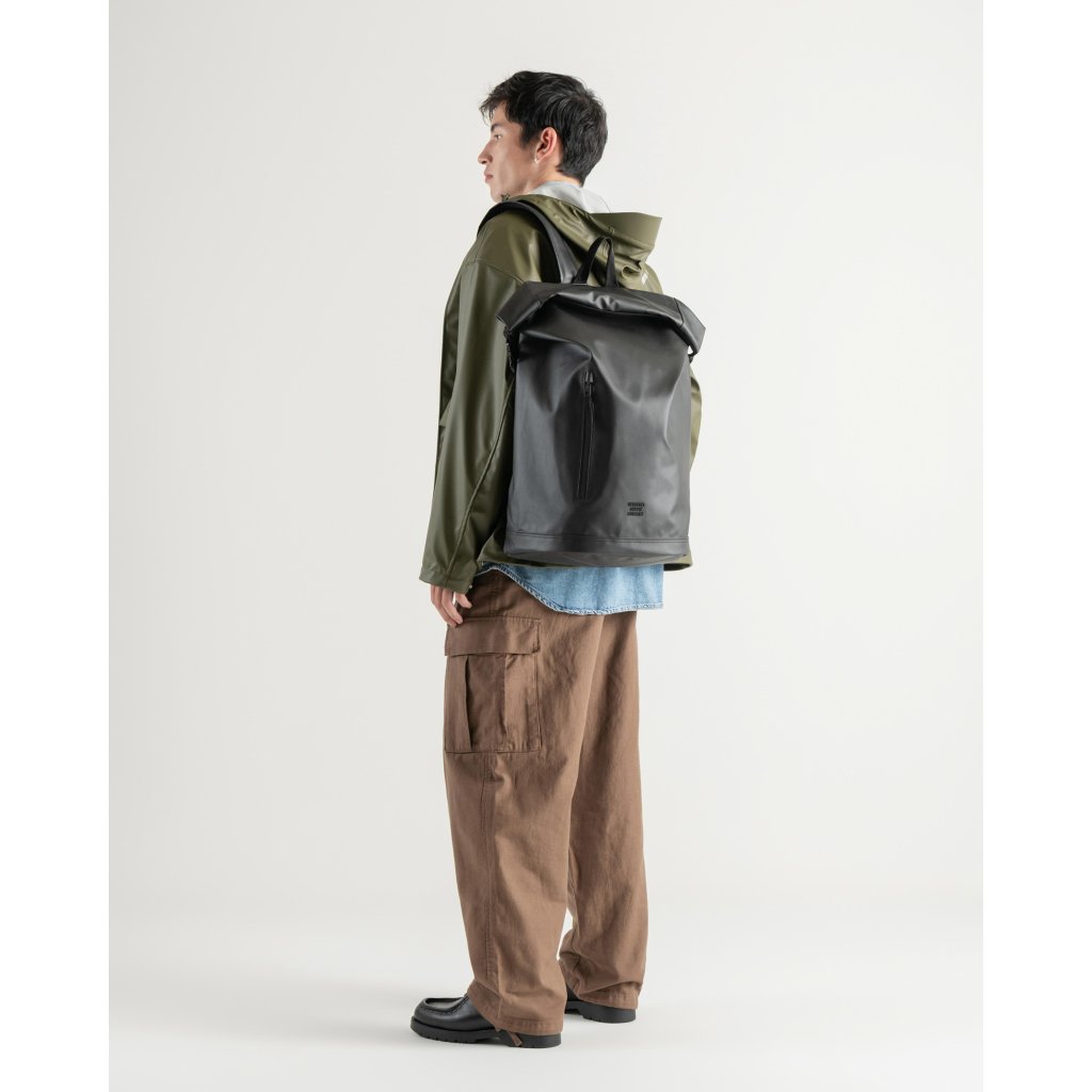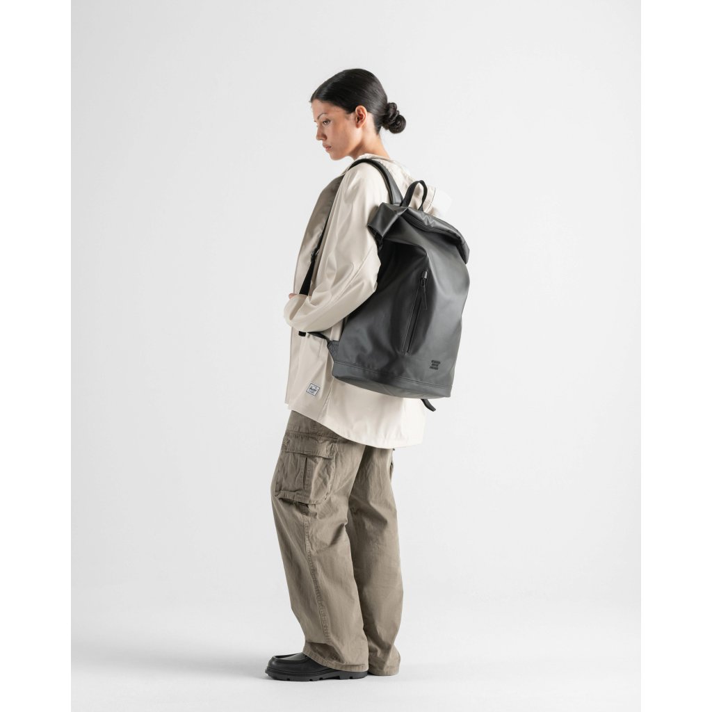 Herschel Roll Top Backpack je navržen tak, aby odolal dešti i každodennímu provozu. Inspirovaný proměnlivým počasím kanadského Vancouveru spojuje minimalistický design, moderní funkce a šetrnost k přírodě. Je vyroben ze 100% recyklovaného polyesteru s matným TPE povlakem, který poskytuje vynikající voděodolnost a elegantní městský vzhled.