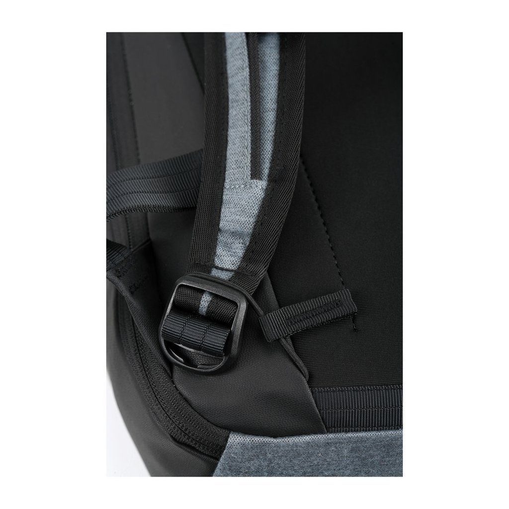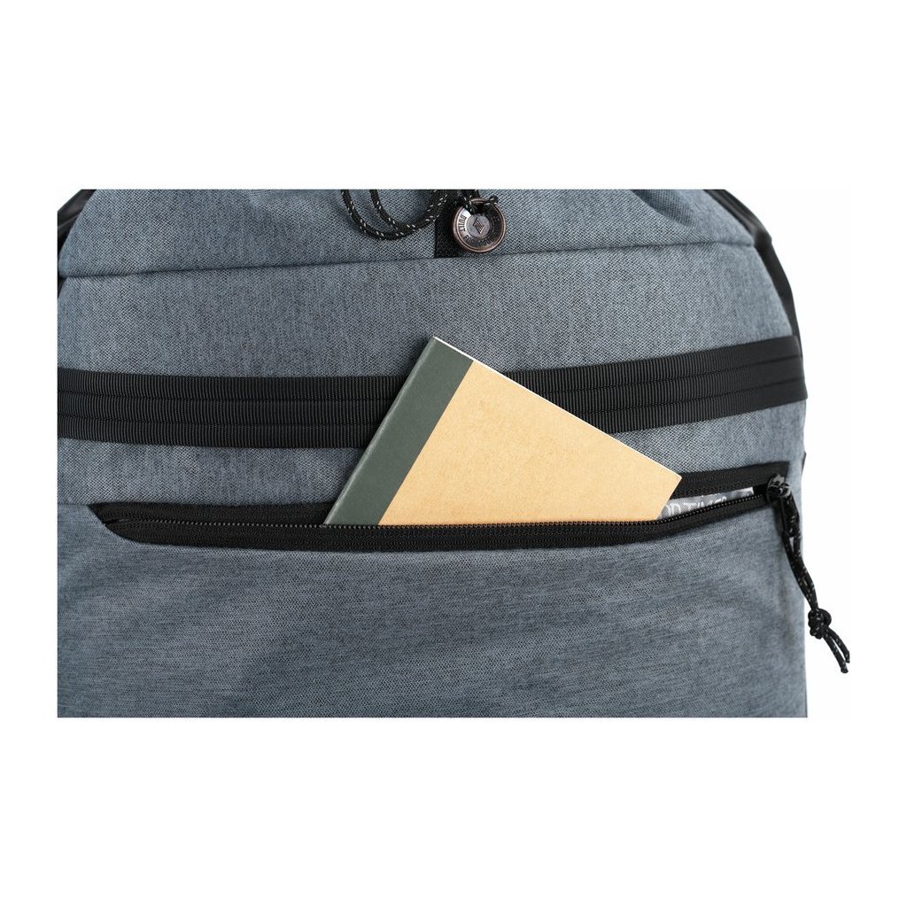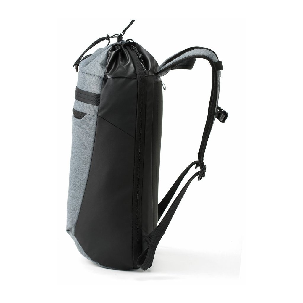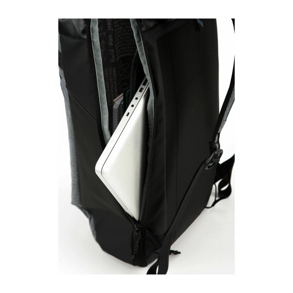 Batoh s horním stahovacím uzavíráním, bočním přístupem na zip, kapsou na 15" laptop, přední kapsou na zip, vnitřní kapsou na zip a malým organizerem na drobnosti. Popruhy jsou ergonomické, polstrované a nastavitelné, spojené hrudním pásem. Měkký zádový panel je polstrovaný a odvětraný.