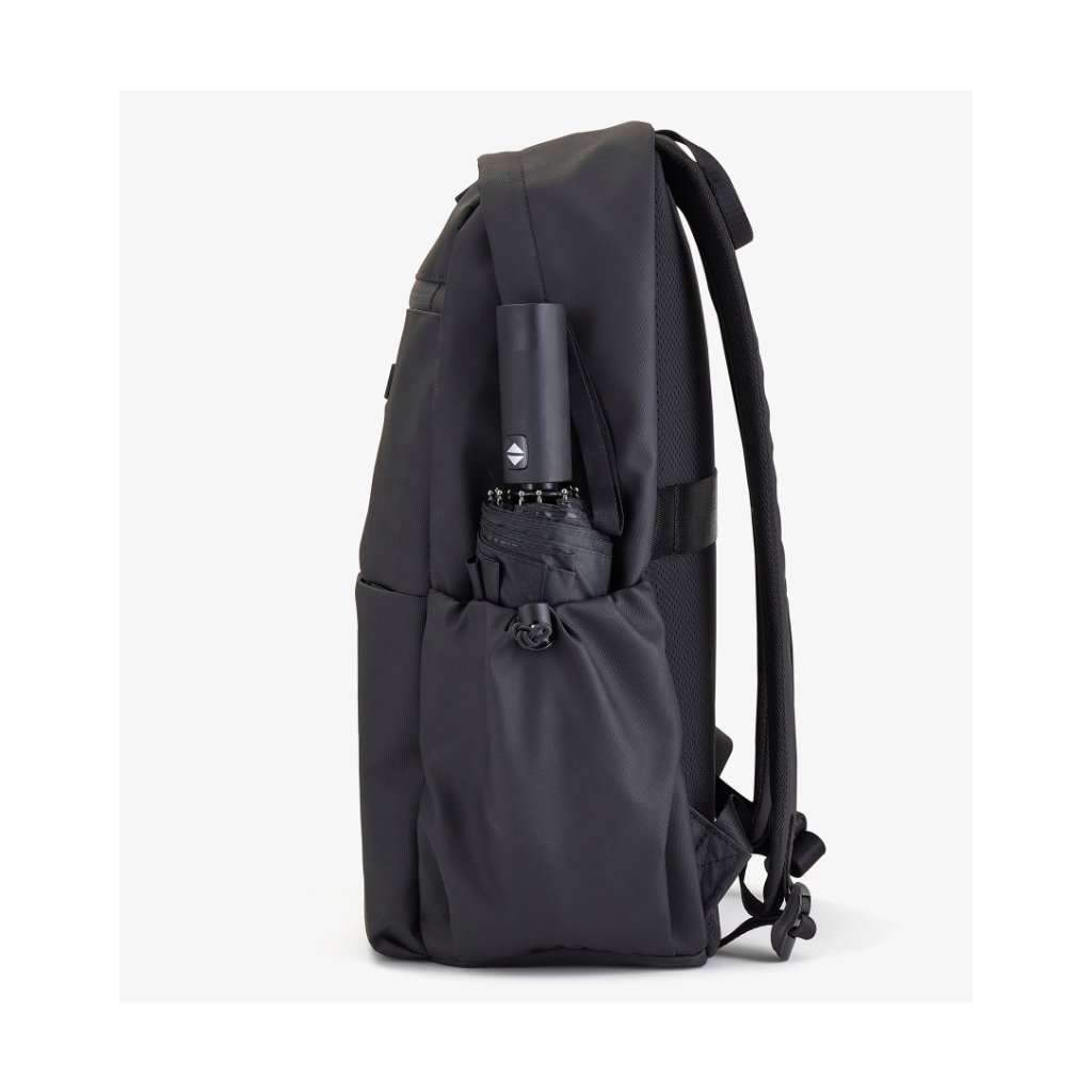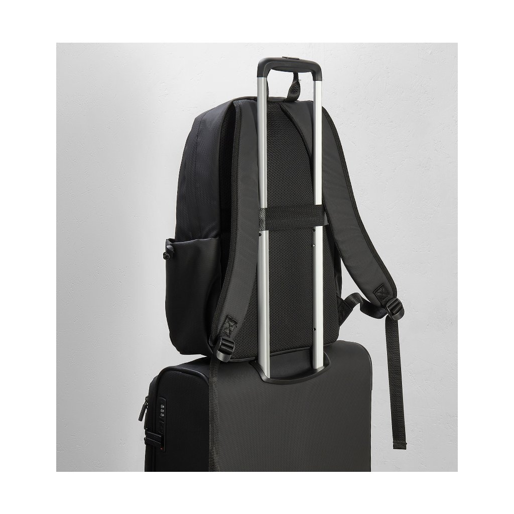 Odolný TPU polyester vyniká mechanickou pevností, odolností proti oděru i chemickému opotřebení a zároveň nabízí vyšší odolnost proti proříznutí a roztržení než běžný polyester. Pohodlí při nošení zajišťují nastavitelné polstrované ramenní popruhy a polstrovaná záda. Praktický popruh na zadní straně umožní batoh snadno připevnit na výsuvné madlo kufru, což oceníte na letišti i při přesunech po městě.