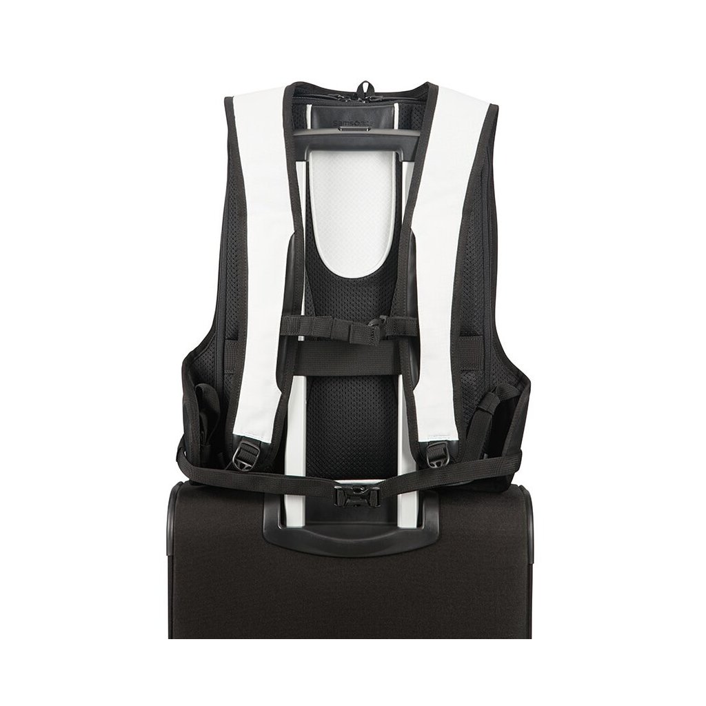 - Smart sleeve: Praktický popruh na zadní straně umožňuje snadné připevnění batohu na madlo kufru.
