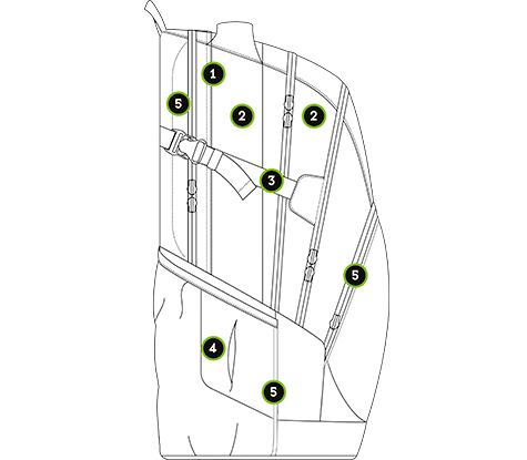 - (ergonomické přizpůsobení podle velikosti zad)
