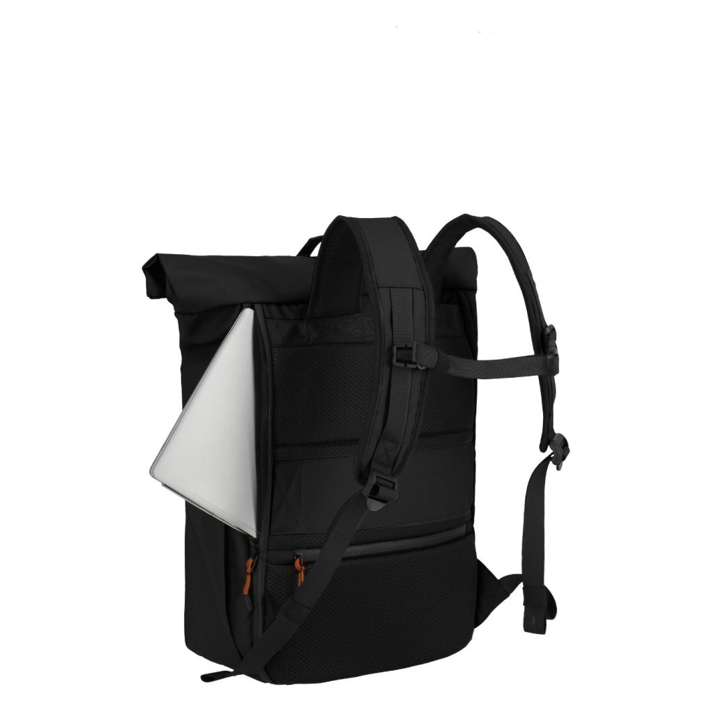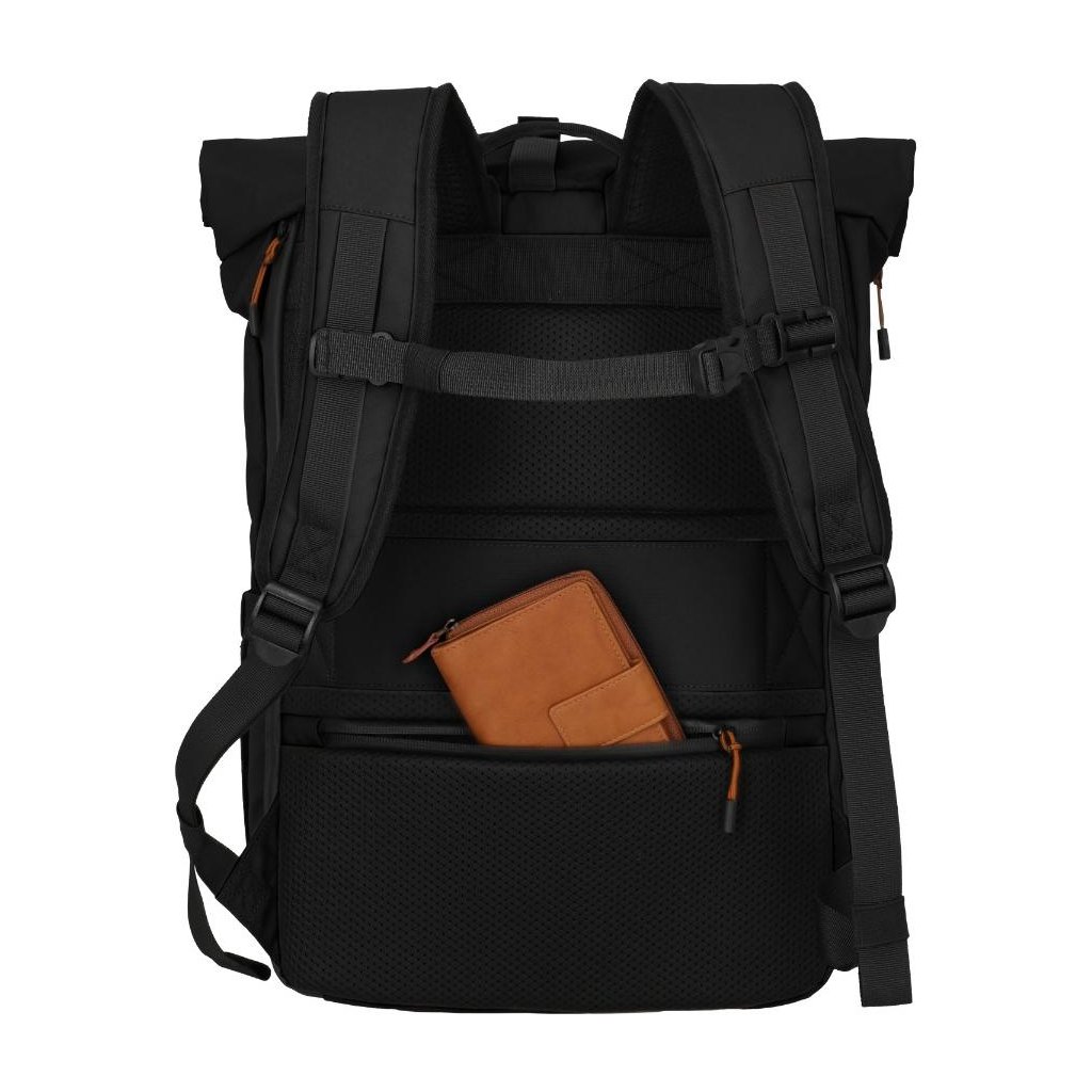 Travelite Briize Backpack M Roll-Up Black – univerzální batoh, který se přizpůsobí vašemu tempu, ať už jste na cestách, v práci nebo na dobrodružství mimo město.