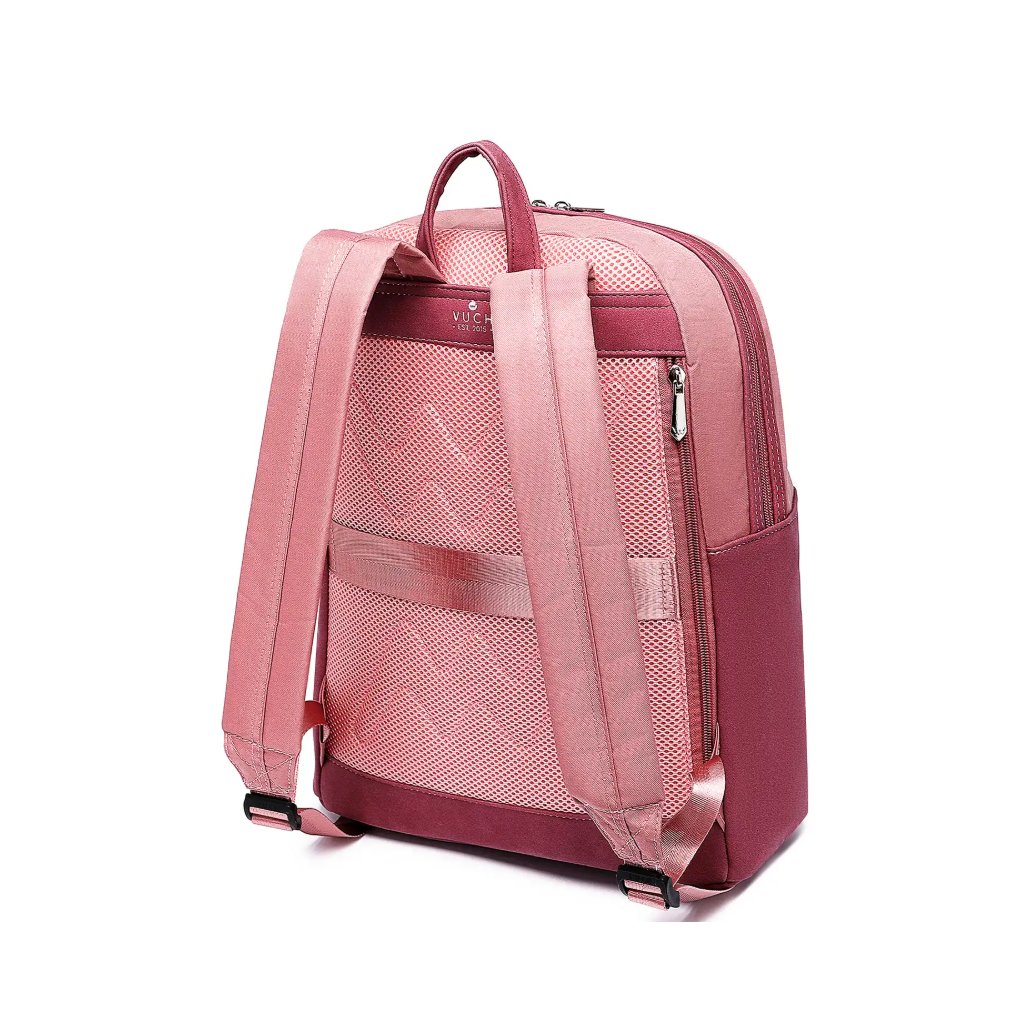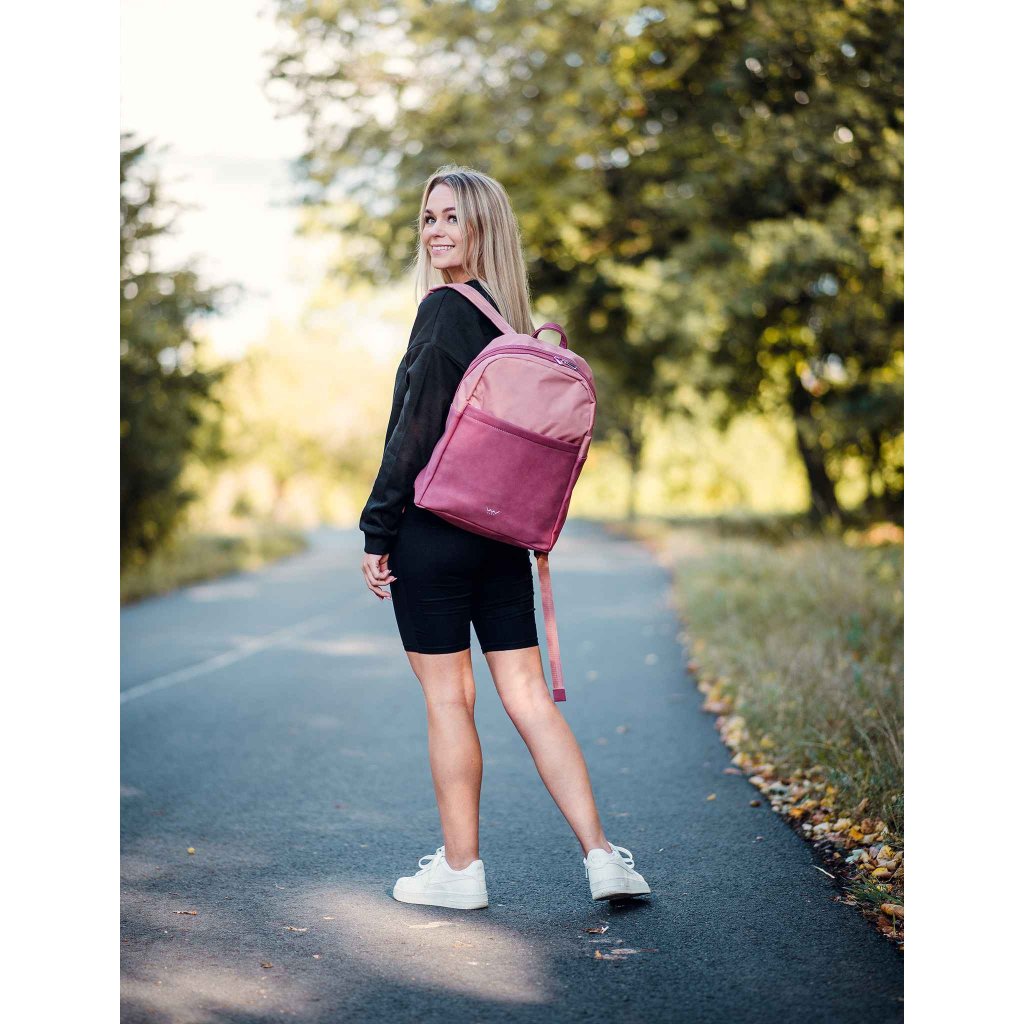 Výrazná vínová barva v kombinaci s čistými liniemi a praktickými detaily dělají z tohoto batohu stylový doplněk do města i na cesty. Polstrovaná záda a popruhy zajišťují pohodlí při nošení, zatímco uchycení na kufr usnadňuje cestování.