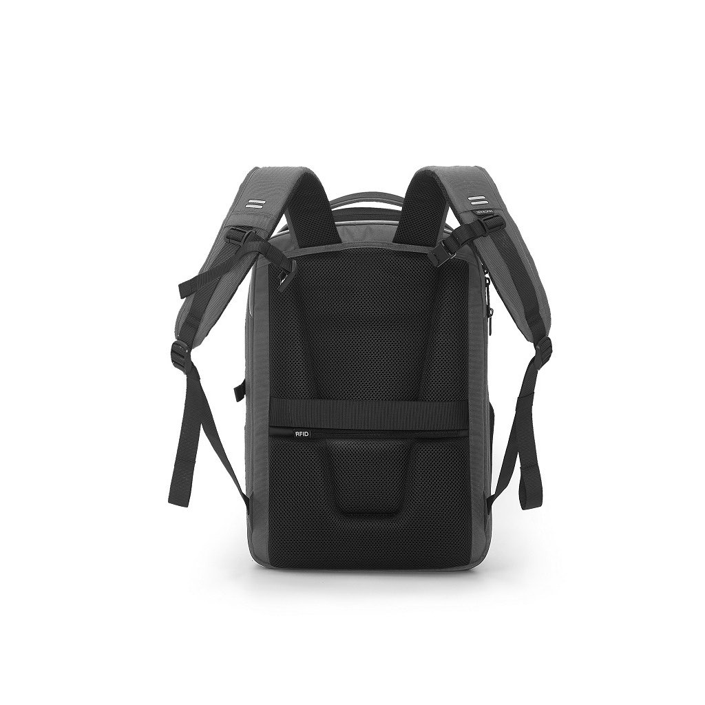 - Bezpečnostní prvky: Skrytá zadní kapsa s RFID ochranou chrání vaše cennosti před krádeží dat.