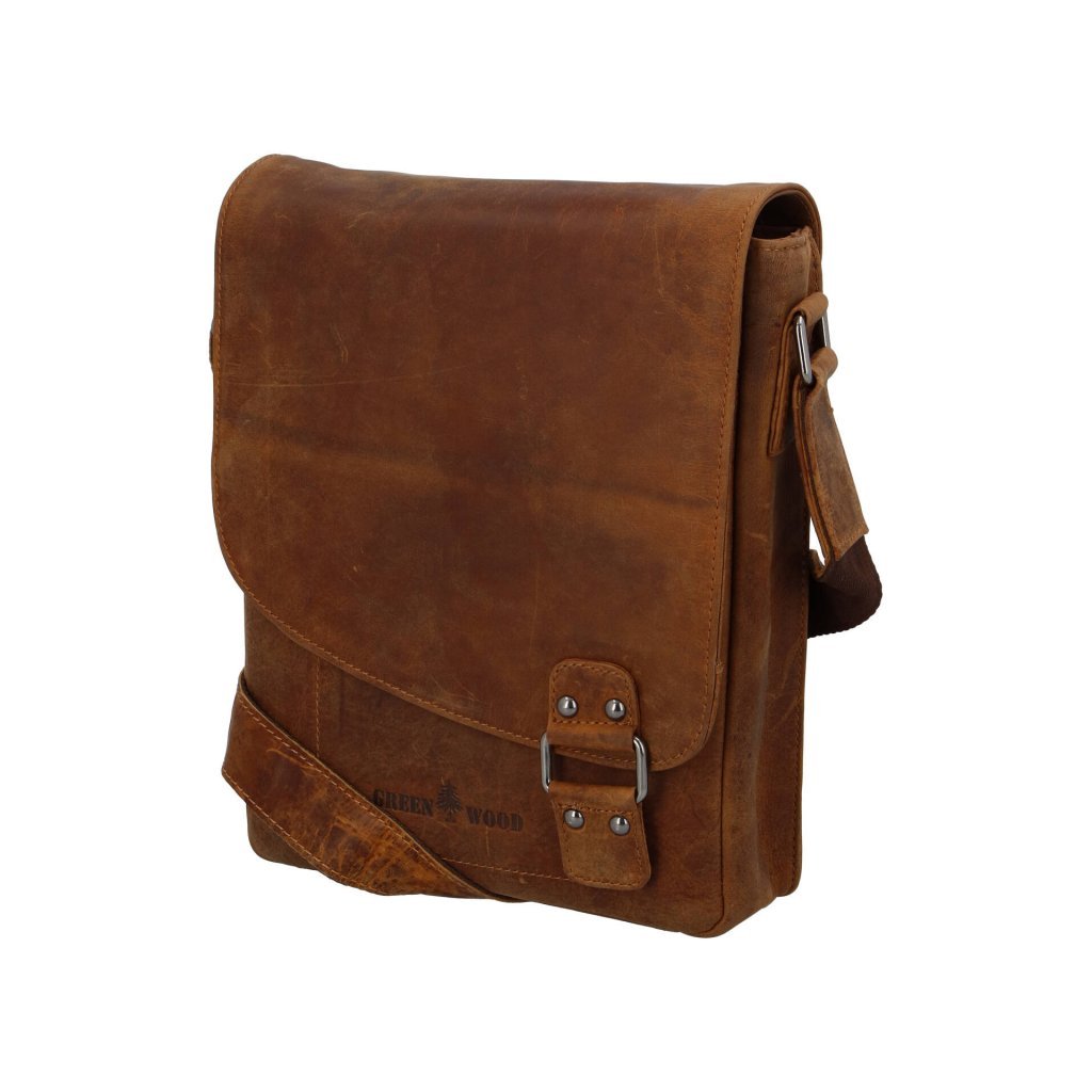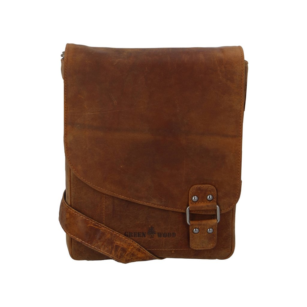 Green Wood Luxusní kožená crossbody taška Indiana, camel